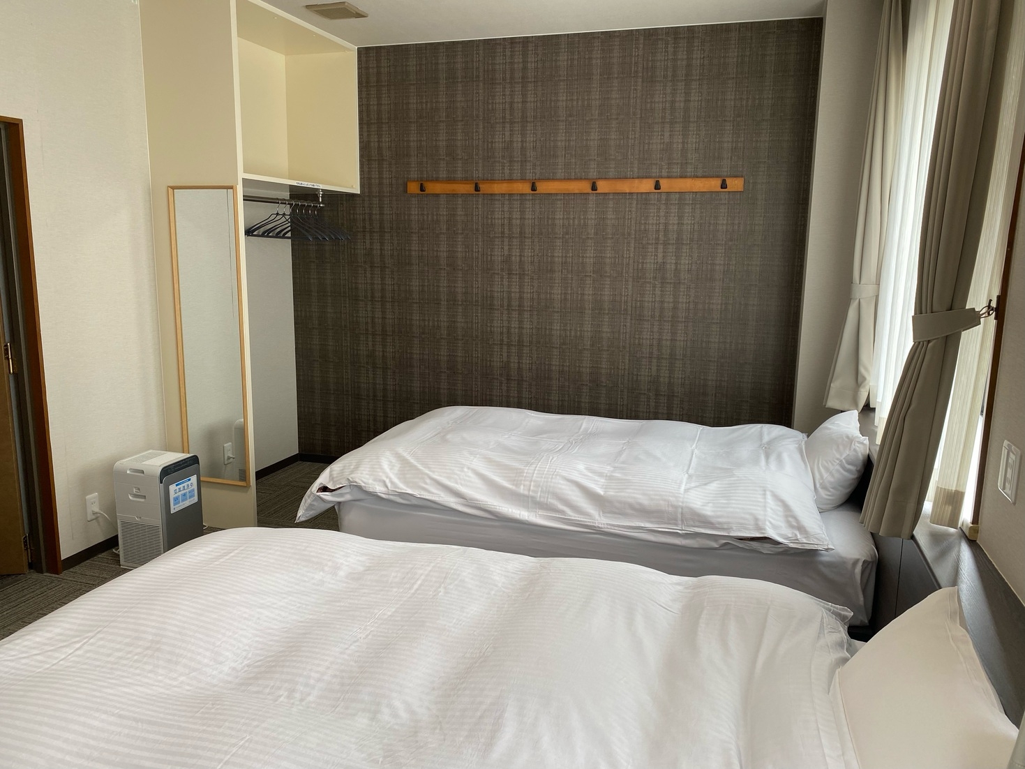 ◇ご家族でのご旅行、お仕事でのご滞在におすすめ◇広々カウンターデスク付ツインルームの素泊まりプランセミダブルベッド/ユニットバス・トイレ/タオル/リンスインシャンプー/ボディソープ/ドライヤー/歯ブラシセット/カミソリ/浴衣/冷蔵庫/電子レンジ/電気ポット/枕元コンセント/電気スタンド/空気清浄機あり■令和元年にリニューアル!■無料駐車場20台あり■電気自動車の充電スタンドあり■館内無料Wi-Fi■全部屋 空気清浄機完備■コインランドリーあり■徒歩圏内にコンビニ、スーパー、飲食店あり◆観光地へのアクセス・のとじま水族館まで お車で45分・気多大社まで お車で10分・千里浜なぎさドライブウェイまで お車で20分・巌門まで お車で15分・機貝岩まで お車で20分・世界一長いベンチまで お車で20分・ヤセの断崖、義経の舟隠しまで お車で 35分ホテルは海の近くなので、海岸沿いに夕陽を見ながらお散歩もいいですよ。お待ちしております(^-^)