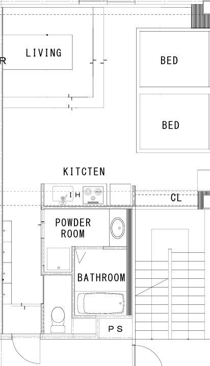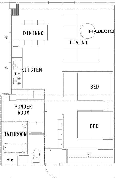 80平米の大きいお部屋で冷蔵庫、キッチン、洗濯機があります。