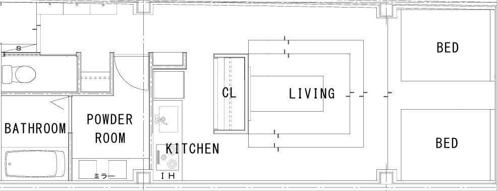 80平米の大きいお部屋で、冷蔵庫、キッチン、洗濯機があります。