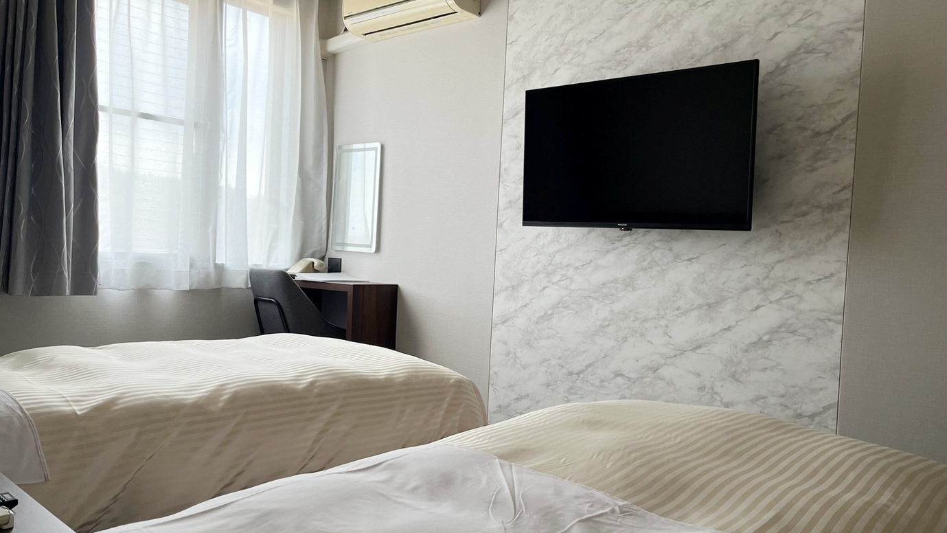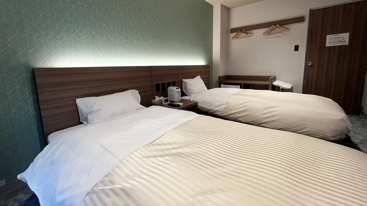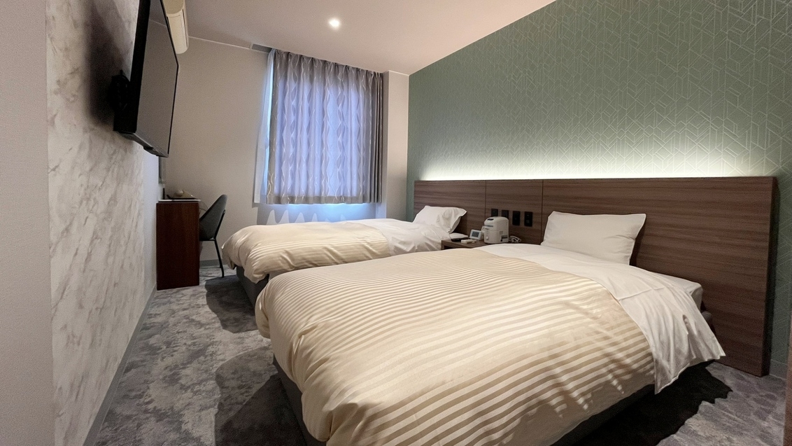 【2025年3月リニューアル】シックで落ち着いた雰囲気のツインルーム(広さ11平米/バストイレなし/禁煙/シングルベッド2台)