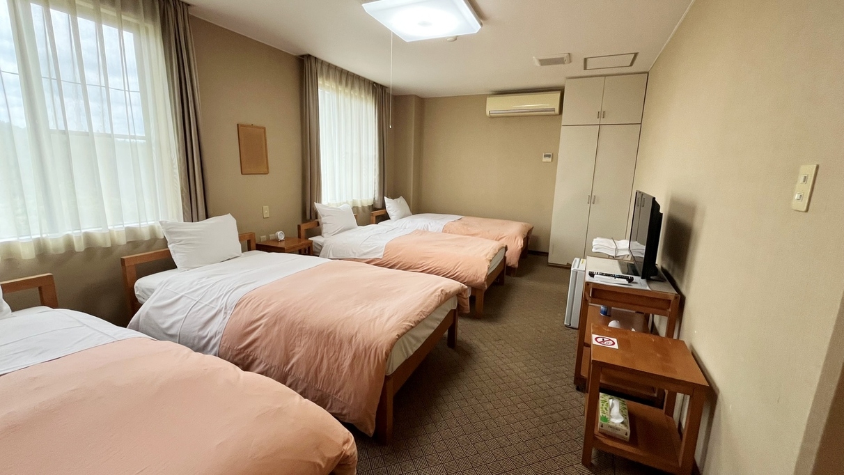 ご家族やご友人同士のご利用に最適な洋室トリプル(広さ20平米/バストイレなし/禁煙/シングルベッド3)