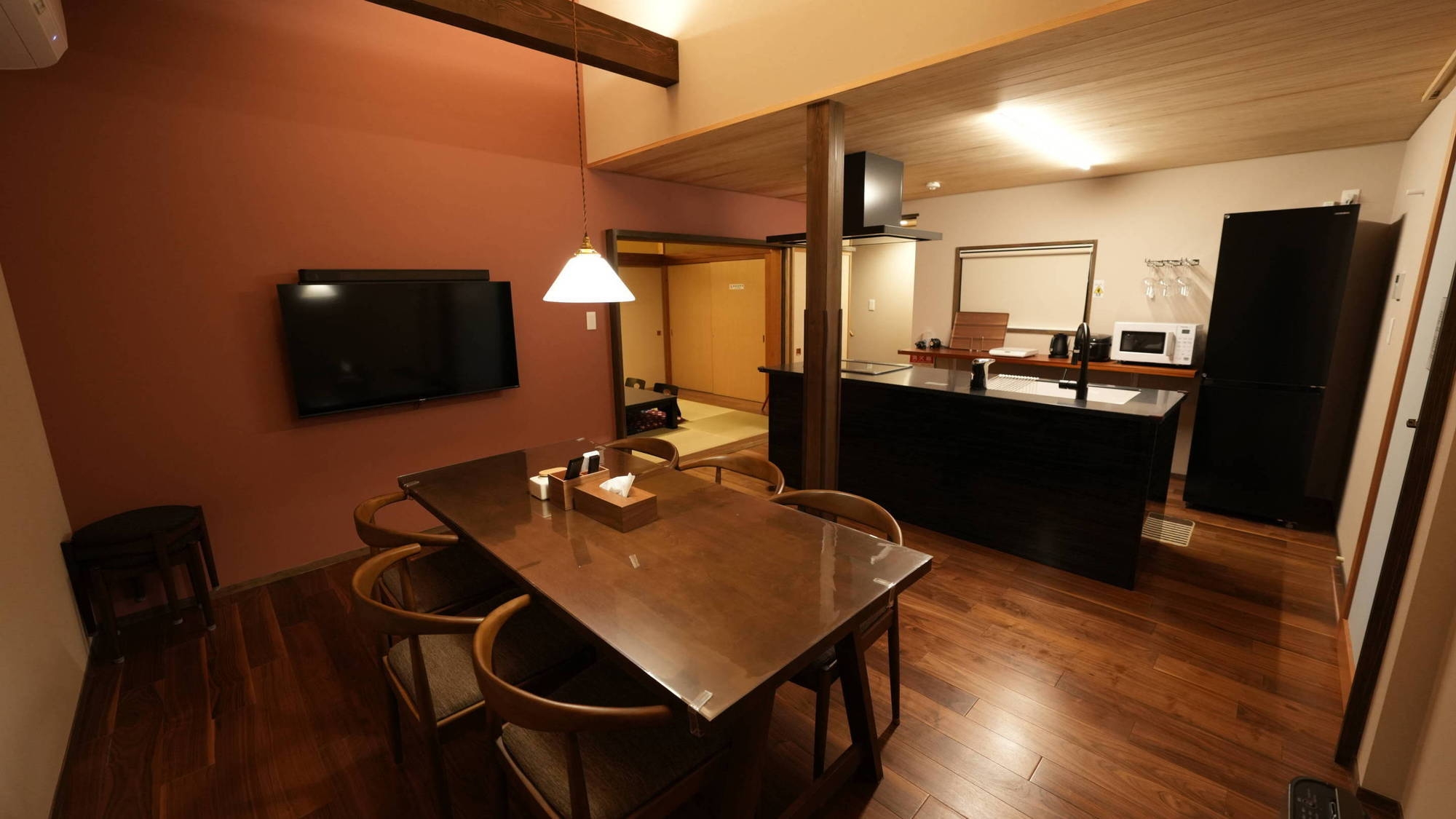 歴史の趣を残しつつも、現代の快適さを融合させたこの宿は、和の美しさが際立つ和室2部屋と、シンプルで心地よい洋寝室2部屋を備えています。