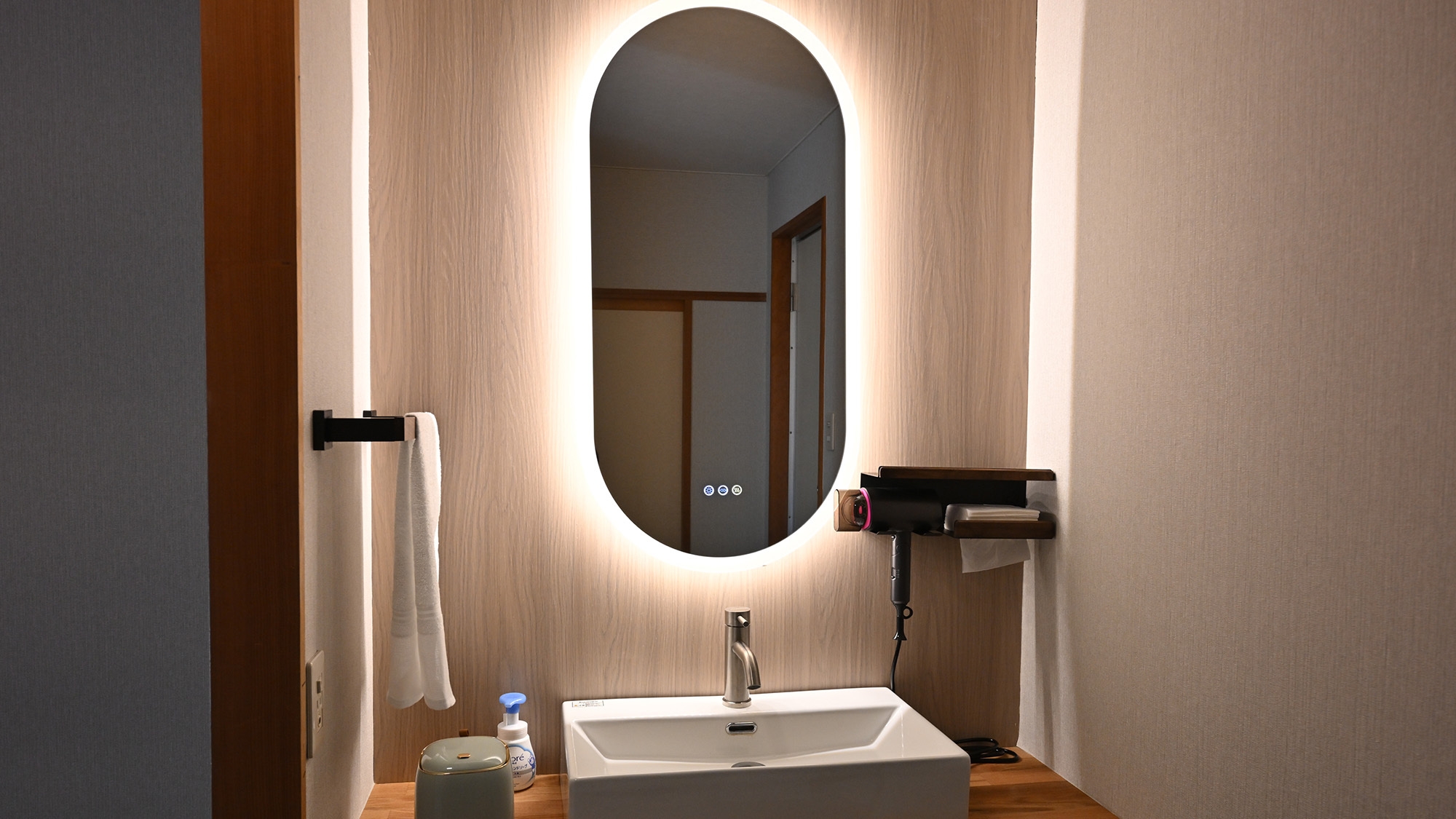 ・脱衣場には、ドライヤー、クレンジング、乳液、化粧水、洗顔料を完備しております。
