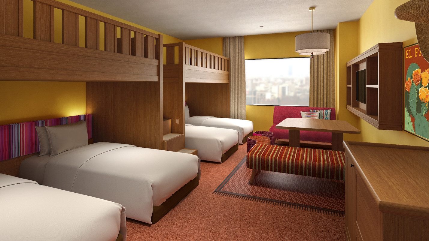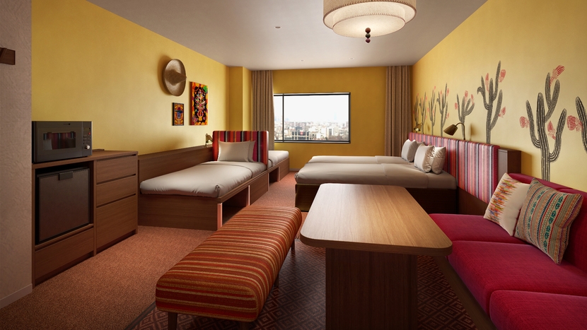 メキシコの太陽に燦々と輝くサンフラワー色の街並みをイメージ。メキシコ湾をモチーフにした客室です。