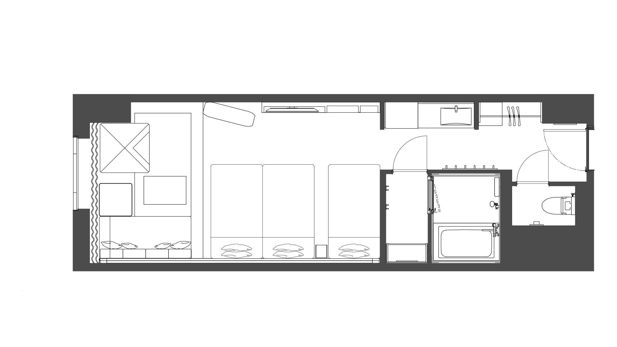 3〜13F・禁煙・ベッドサイズ100cm×196cm×3台、エキストラベッド90cmx196cmx1台 (ローベッド)