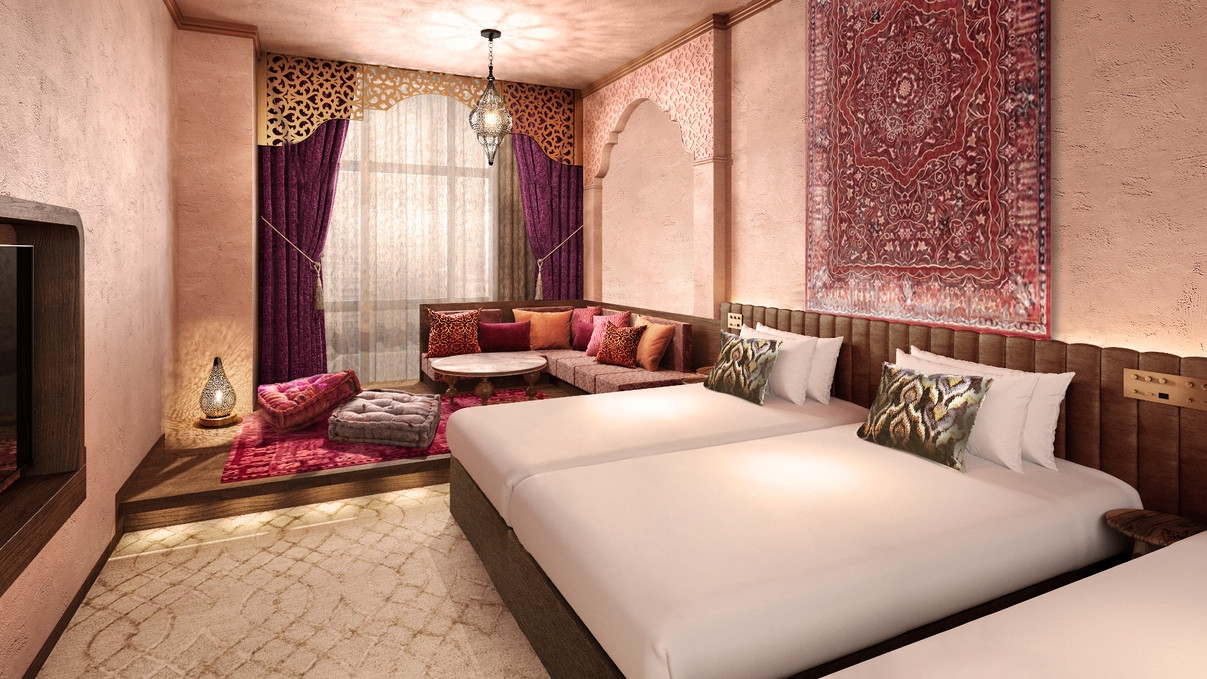 まるで物語の中に迷い込んだような、幻想的で異国情緒あふれるアラビアンをテーマにした客室です。