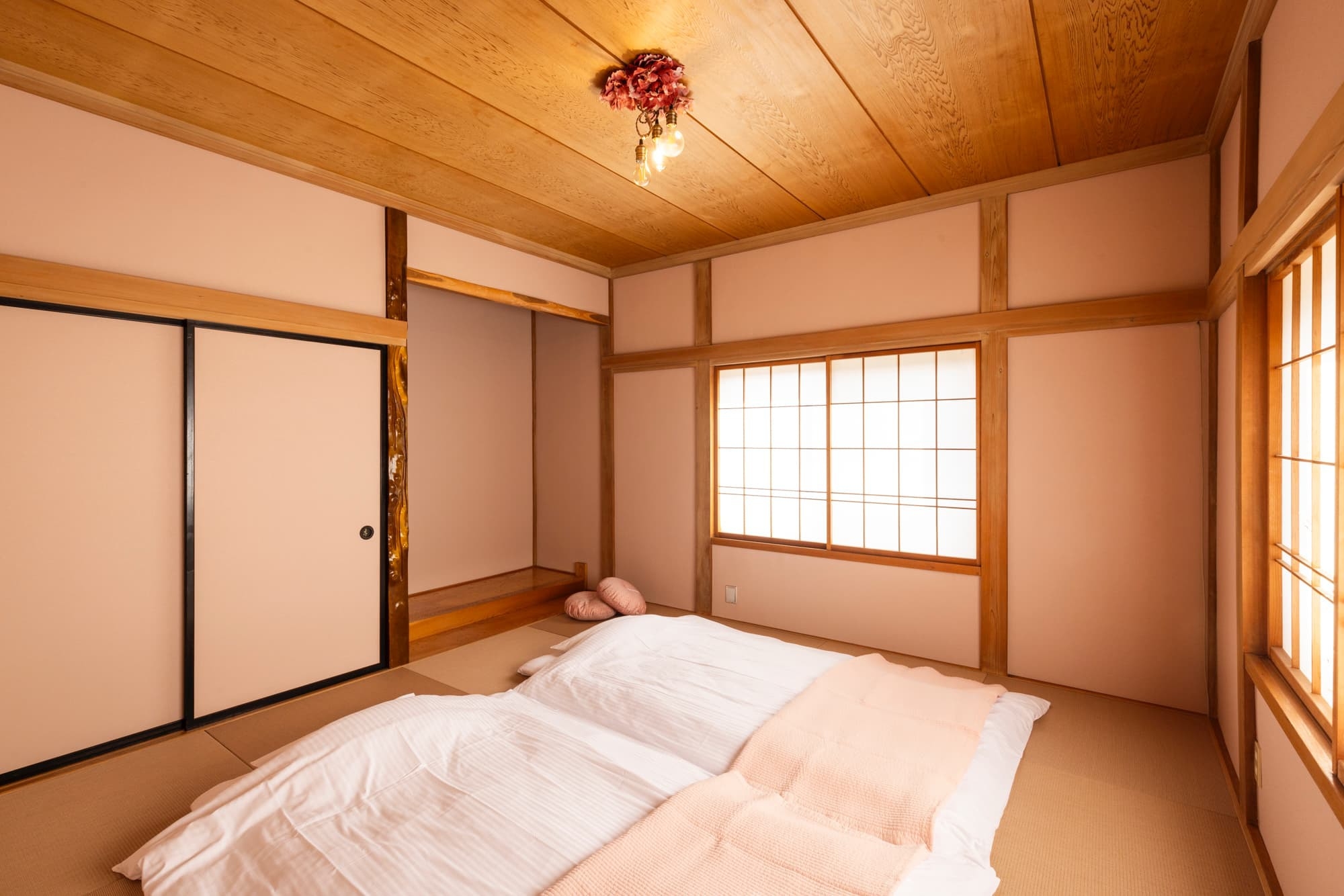 古民家リビング+ダイニング+寝室4部屋(お布団)+トイレ、バス、BBQ機材(貸出無料)