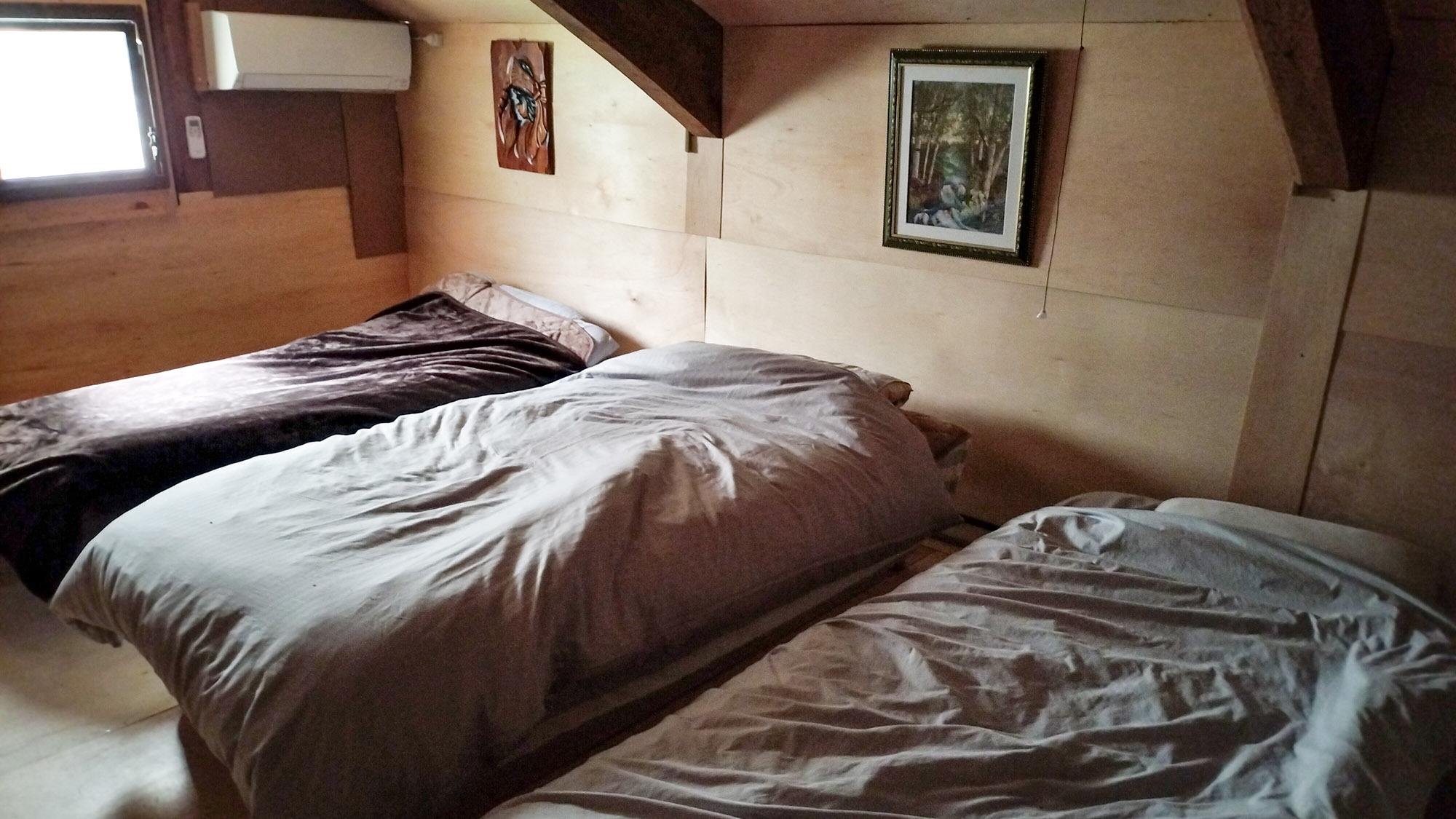 バス・トイレとキッチンは母屋にございます。オーナーと共用ですがご自由にお使いいただけます。最大5名まで宿泊可能。布団3組とシングルベッ