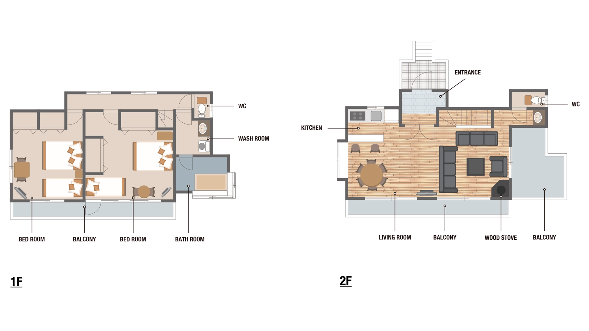 一棟貸し 定員6名 寝室2【ダブル2、シングル2】