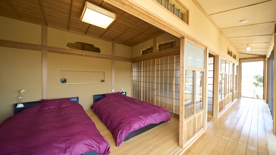 当館はルームチャージ(一棟料金)制でございます。グループ旅行をお得に楽しんでいただけるよう、何名でお泊り頂いても料金は一律となっております。■定員:4名(乳幼児含む)■寝室:2室【ダブル2(寝室)・布団2(和室)】■駐車場:2台無料【寝具のご用意について】・寝具は宿泊人数分のみのご用意となります。・まずベッドから優先的にご用意いたします。・ベッド数を超える人数でのご宿泊の場合は、布団を追加でご用意いたします。・寝具の配置や種類にご希望がある場合は事前にご連絡ください。【設備品】・家具:座卓、座椅子、ベッド・寝具一式・家電:テレビ、冷蔵庫、エアコン、乾燥機付洗濯機 、炊飯器、ケトル、電子レンジ、オーブントースター、コーヒーメーカー・食器:スプーン、フォーク、ナイフ、箸、茶碗、汁椀、小皿、大皿、急須、湯呑、ティーポット、カップ、グラス、ワイングラスなど・調理器具:フライパン、鍋、土鍋、包丁、まな板、缶切り、ワインオープナー、ボウル、しゃもじ、トング、フライ返し、菜箸など※調味料・サラダ油などはご持参下さい【アメニティ】歯ブラシ・シャンプー・コンディショナー・ボディーソープ・ハンドソープフェイスタオル・バスタオルはお一人様1枚,連泊の場合は2枚シーツ、マクラカバー、バスタオル、フェイスタオルは、お申し込み頂いた人数分のご用意。※利用開始日の7日前よりセット数の増減はできかねます【注意】※重要鍵の開け方、チェックイン・アウト方法を予約後にご案内しております。必ずメールのご確認をお願いいたします※アクセス施設までは【カーナビを使わない】ようお願い申し上げます。別荘地のため住所入力をしても表示されません。案内資料の【アクセスマップ(PDF)】もしくは【Googleマップ】をご活用ください。※害虫類自然豊かな場所に位置しておりますため、夏季には虫が出てくることがございます。殺虫スプレーをご用意しておりますので、ご自由にお使いください。※冬季利用について冬季期間中(12月上旬〜4月中旬)、お車でお越しの際は必ずチェーンご持参の上スタッドレスタイヤにてお越しください(四輪駆動車 推奨)