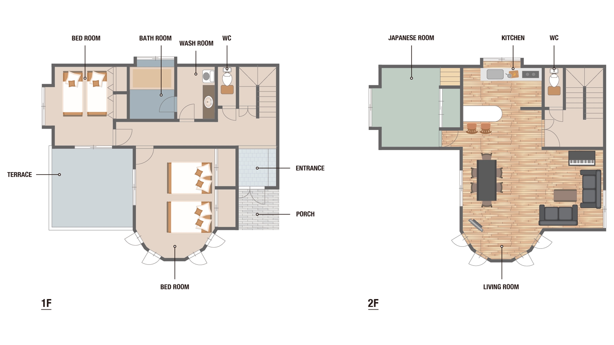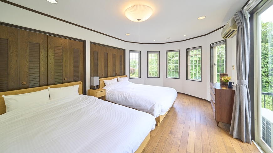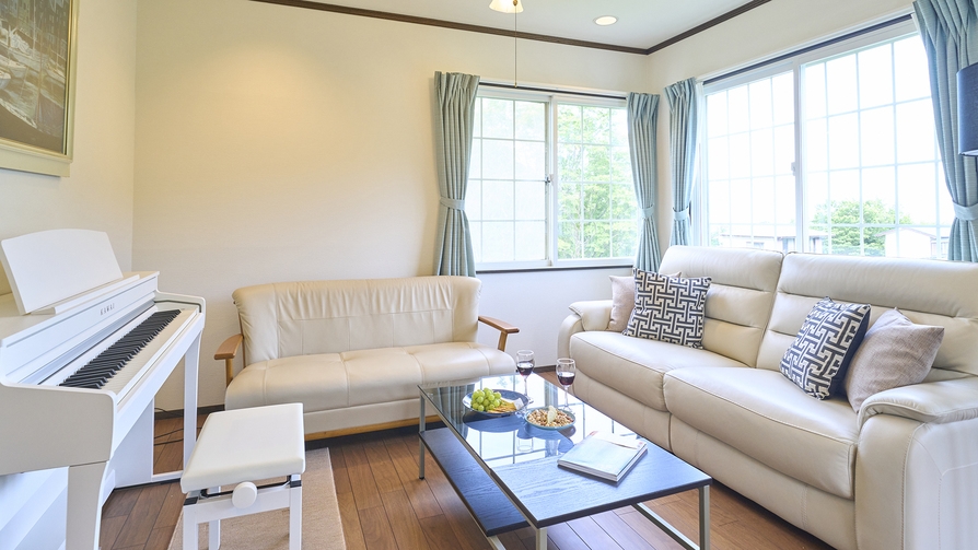 チェックイン:16時 チェックアウト:10時グループ旅行をお得に楽しんでいただけるよう、何名でお泊り頂いても料金は一律となっております。■定員:9名(乳幼児含む)■寝室:3室【ダブル2(洋室)・シングル2(洋室)・布団3(和室)】【寝具のご用意について】・寝具は宿泊人数分のみのご用意となります。・まずベッドから優先的にご用意いたします。・ベッド数を超える人数でのご宿泊の場合は、布団を追加でご用意いたします。・寝具の配置や種類にご希望がある場合は事前にご連絡ください。【設備品】・家具:ダイニングテーブル・リビングテーブル・ソファ・和室テーブル・座椅子・ベッド・電子ピアノ・家電:テレビ・電子レンジ・トースター・炊飯器(5.5合)・電気ポット・冷凍冷蔵庫・ドラム式洗濯乾燥機・冷暖房エアコン・スティッククリーナー・ドライヤ—【食器】スプーン・フォーク・箸・コップ・グラス・ワイングラス・大皿・小皿・茶碗・汁椀・ティーポット・急須・湯呑・調理器具:包丁・まな板・フライパン・鍋・菜箸・ボウル・ざる・お玉・フライ返し・トング・キッチンバサミ・栓抜き・IHヒーター・ガス3口コンロ※調味料・サラダ油などはご持参下さい【アメニティ】歯ブラシ・シャンプー・コンディショナー・ボディーソープ・ハンドソープフェイスタオル・バスタオルはお一人様1枚,連泊の場合は2枚シーツ、マクラカバー、バスタオル、フェイスタオルは、お申し込み頂いた人数分のご用意。※利用開始日の7日前よりセット数の増減はできかねます●おすすめの持ち物寝間着・パジャマ,食材,飲み物,調味料,調理用油,洗濯用洗剤スキンケア,ヘアケア,ヘアアイロン 等【注意】※重要鍵の開け方、チェックイン・アウト方法を予約後にご案内しております。必ずメールのご確認をお願いいたします※アクセス施設までは【カーナビを使わない】ようお願い申し上げます。別荘地のため住所入力をしても表示されません。案内資料の【アクセスマップ(PDF)】もしくは【Googleマップ】をご活用ください。※害虫類自然豊かな場所に位置しておりますため、夏季には虫が出てくることがございます。殺虫スプレーをご用意しております。
