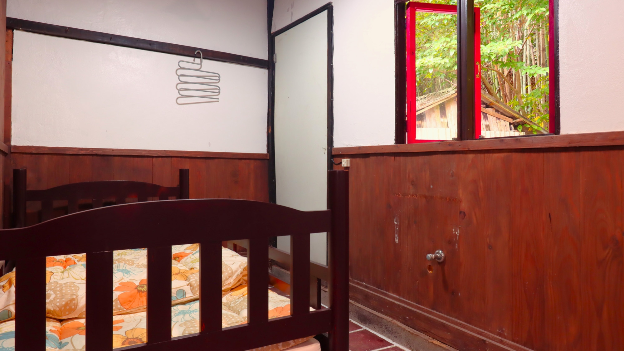洋室のコテージタイプのお部屋です。シャワールーム、ミニキッチン、冷蔵庫完備。※外にあるトイレをご利用いただけます。