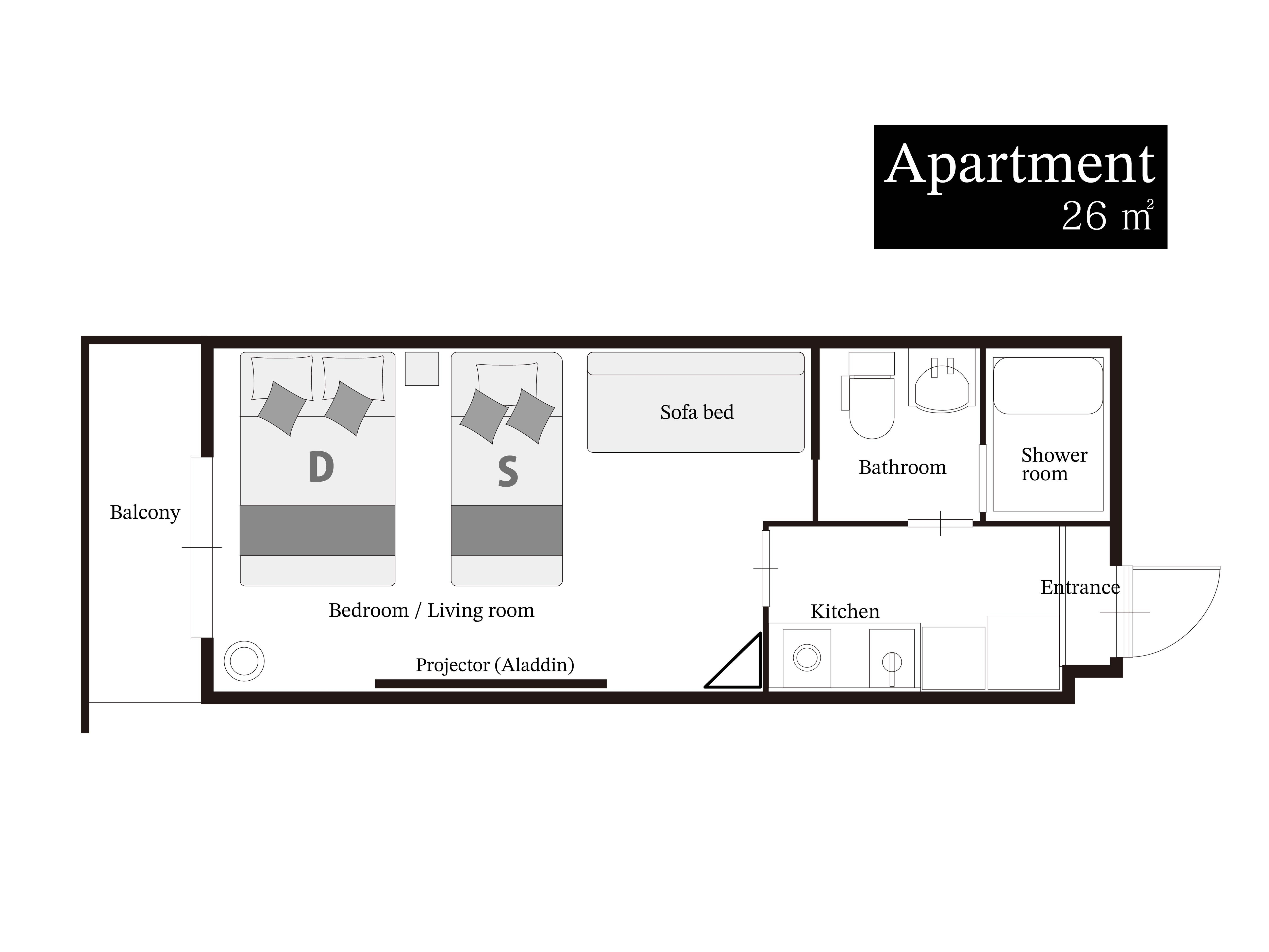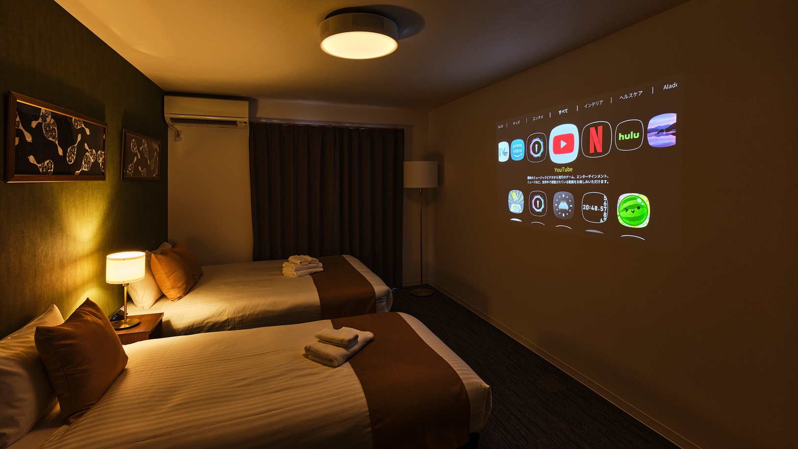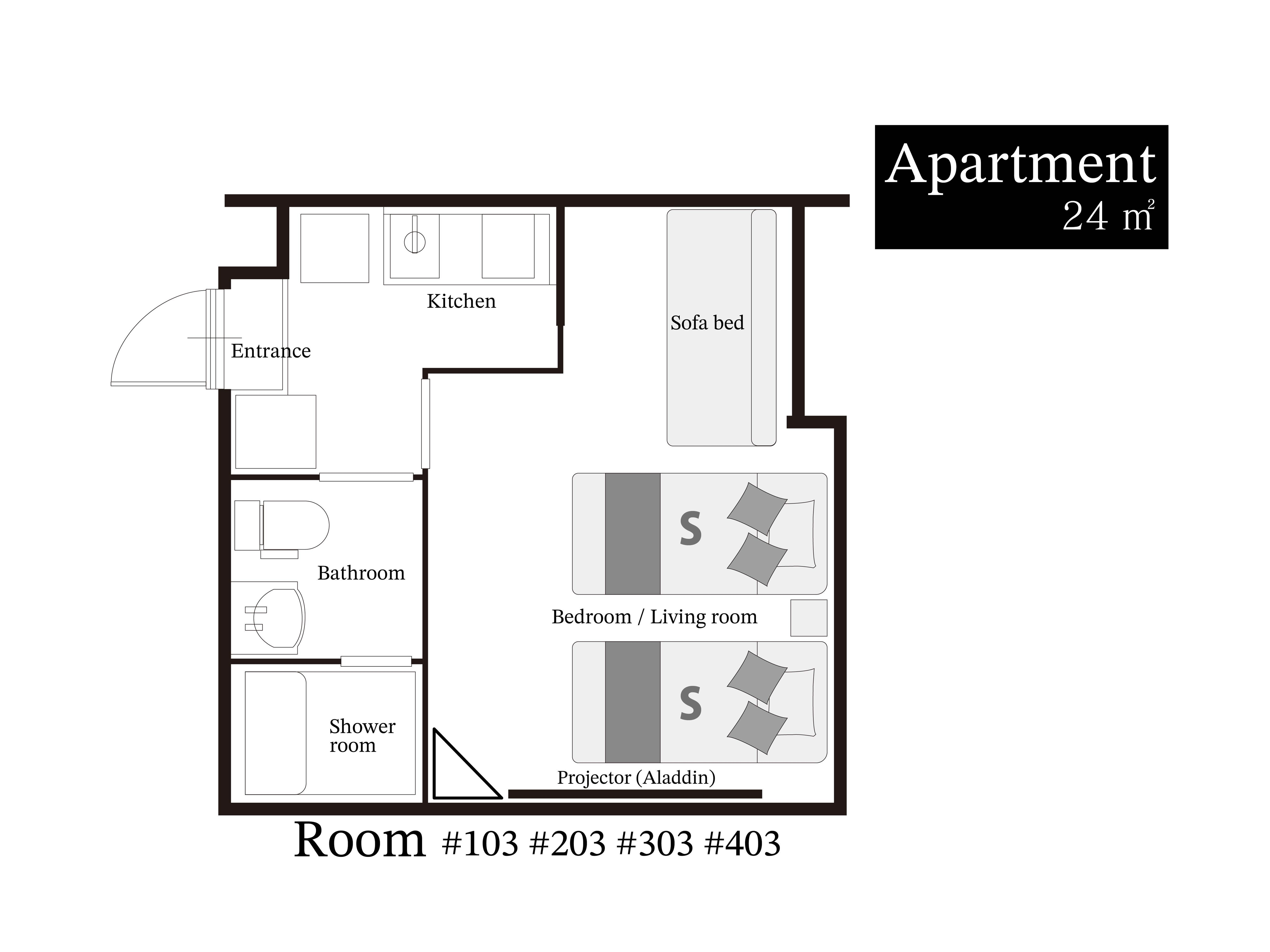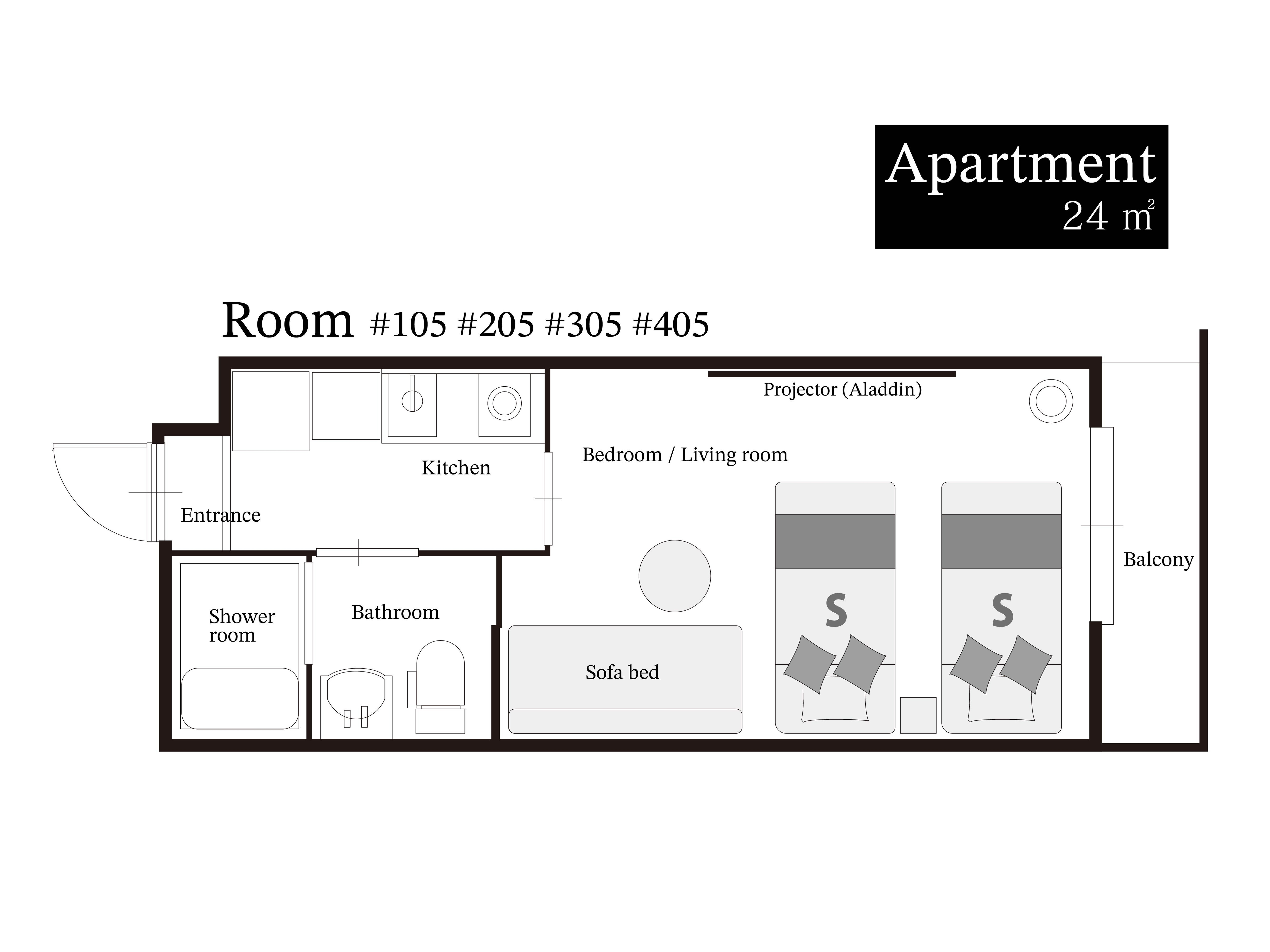 ●プライベートバス、WiFi、プロジェクター、冷蔵庫、湯沸かしケトル完備。●シングルベッド2台常備、2名様宿泊可能。ソファベッドを追加すれば、最大3名様まで。