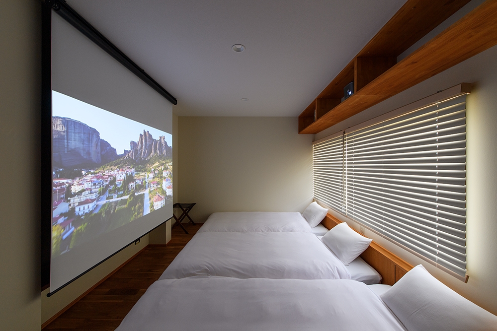 プロジェクターで映像を楽しめるお部屋 / シングルベッド×3/ バストイレ共用