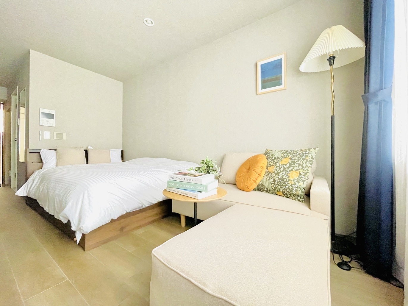 ダブルベッド1台のダブルルーム!冷蔵庫・電子レンジ・電気ケトル付
