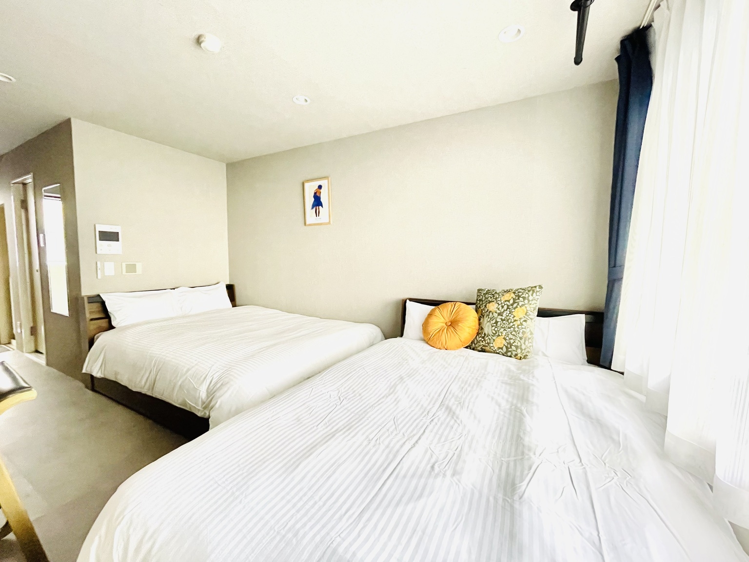ダブルベッド2台のダブルツインルーム!冷蔵庫・電子レンジ・電気ケトル付
