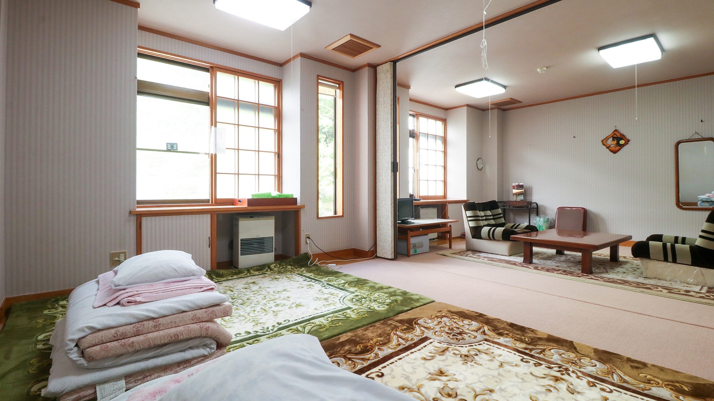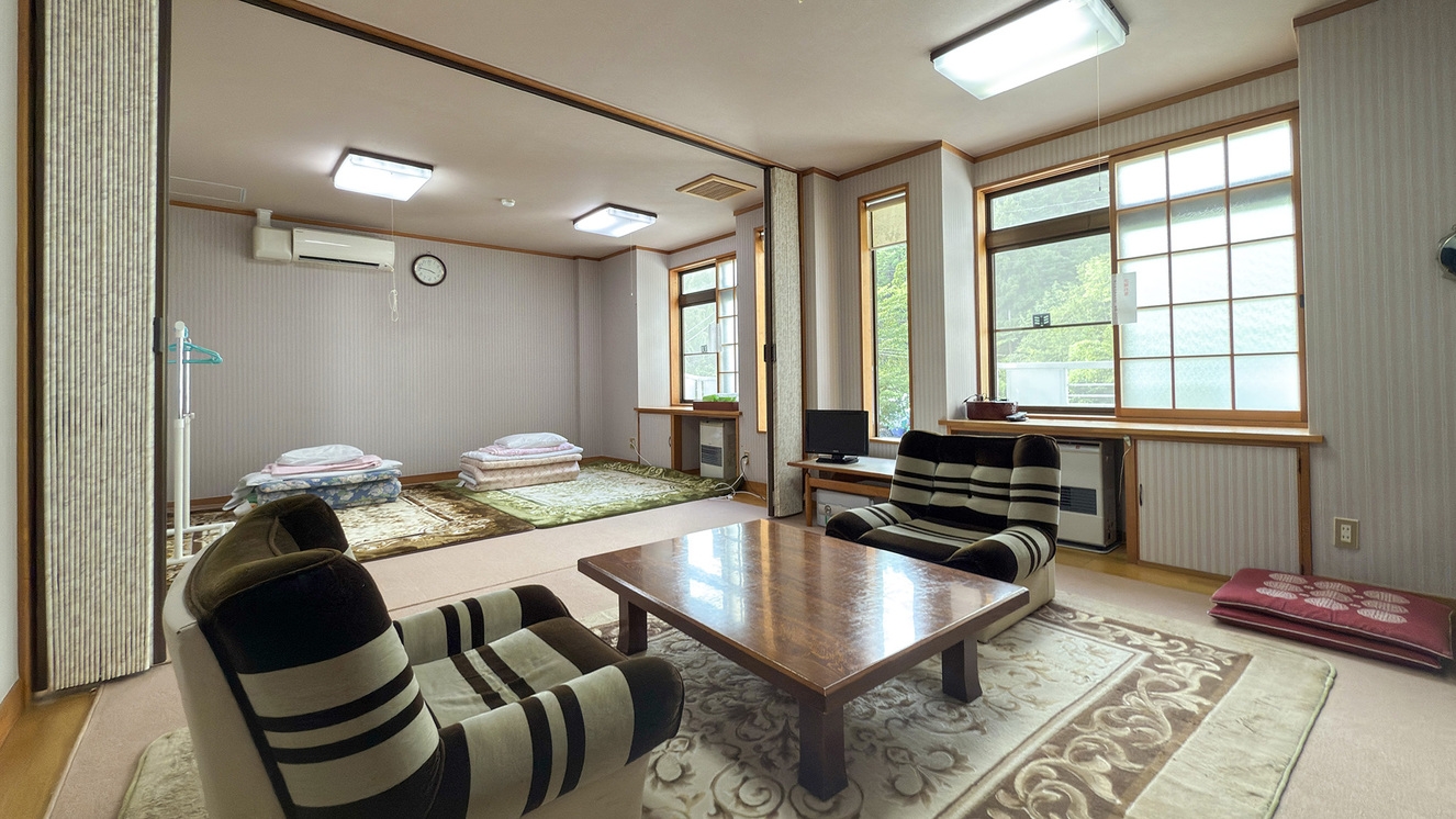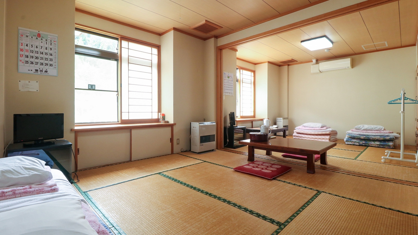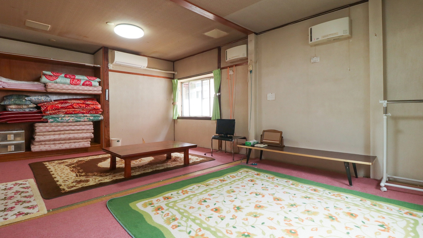 2〜6名様でご利用いただける和室12畳客室です。※バス・トイレは共同※喫煙客室[客室設備]テレビ・Wi-Fi・エアコン・湯沸かしポット