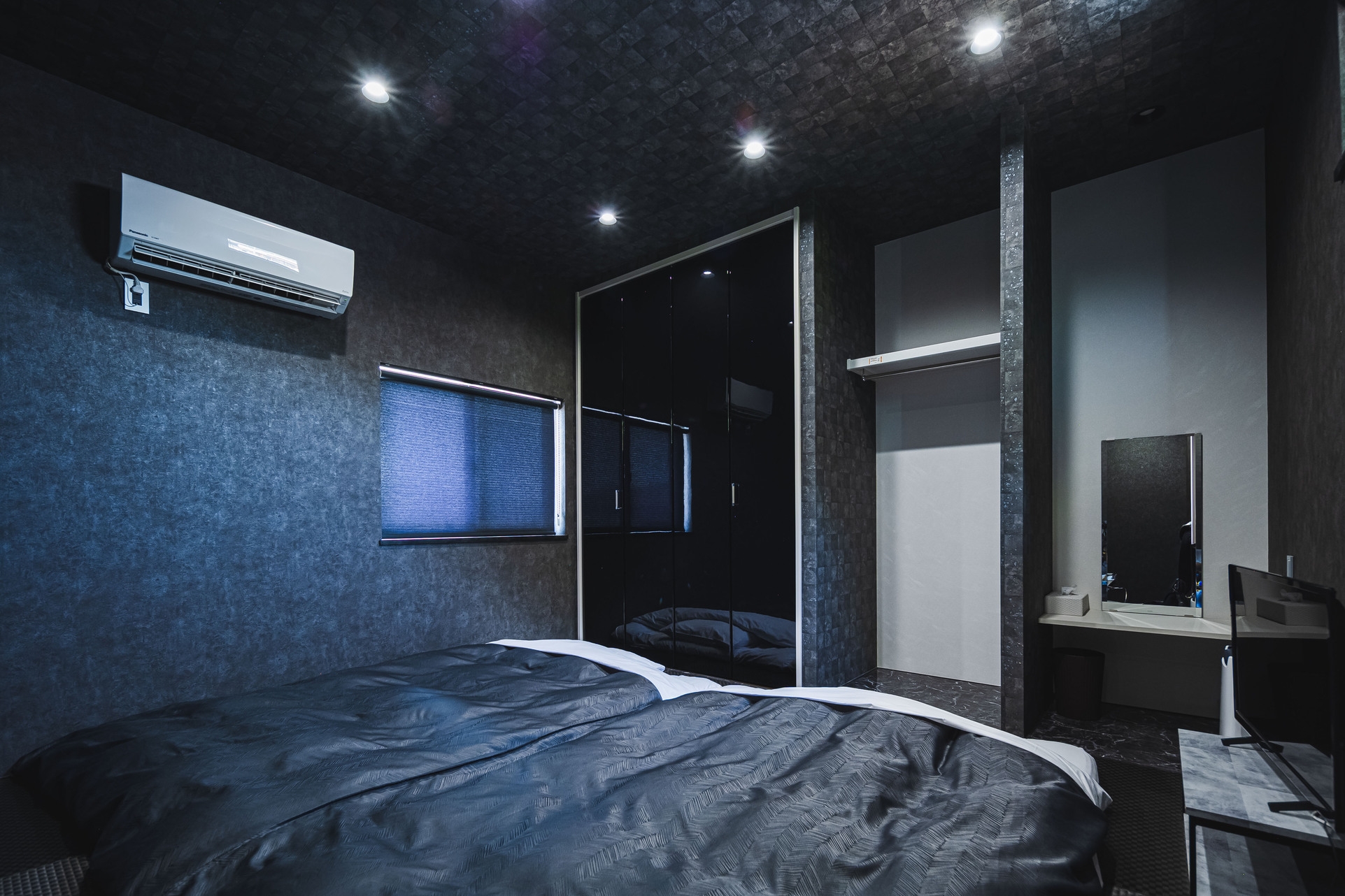豊かな自然に囲まれた穏やかな場所に凛と佇む黒い建物の中にはモノトーンで統一され落ち着いた空間の中、充実した設備。一歩外に出れば目の前は一面の海と山々に囲まれ少し歩けば広い公園があり静かでゆったりと、日常を忘れる一時を過ごしください。※5名様以上で宿泊をご希望のお客様は宿にお電話下さい。089-954-3549幼児の方は無料です。★縦列二台まで無料駐車場 有※駐車場での盗難・事故に関しまして当館では一切の責任を負いませんご了承ください。※万全を期しておりますが、豊かな自然に囲まれている為、館内に虫が侵入する場合がございます。あらかじめご了承の上ご予約をお願いいたします。◆ご宿泊者以外の入室は固くお断りしております。◆チェックインの時間が過ぎる場合は早めにご連絡をお願い致します。◆盗難、紛失につきましての責任は保証致しません。◆当施設の備品、施設を損傷された場合は別途費用をご請求させて頂きます。◆近隣のご迷惑になる様な行動をされた場合は退出して頂きます。※その場合、宿泊料金のご返金は致しません。◆バーベキュー・花火などをされた場合のゴミはお客様が回収・処分をお願い致します。★無料Wi-fi有★館内禁煙(外に灰皿 有)★各部屋(エアコン/TV 有)★トイレ/洗面/風呂/洗濯機 館内 有★キッチン完備(調理器具・食器・カトラリー 有※調味料はございません)★タオル・歯ブラシ 有【キャンセル料は以下の通り頂戴いたします】当日:宿泊料金の100%前日:宿泊料金の50%※不泊については以下の通り頂戴いたします。連絡なしの不泊/不着 :宿泊料金の100%