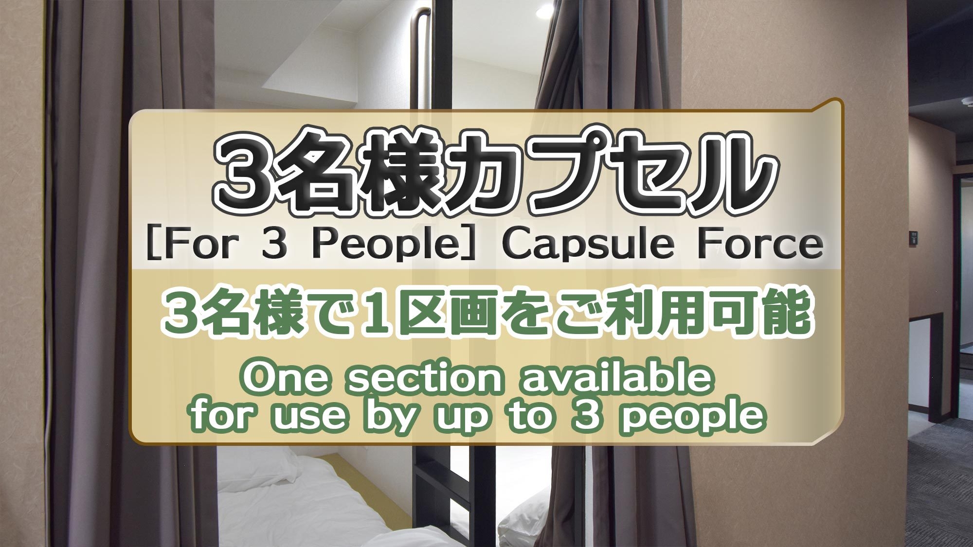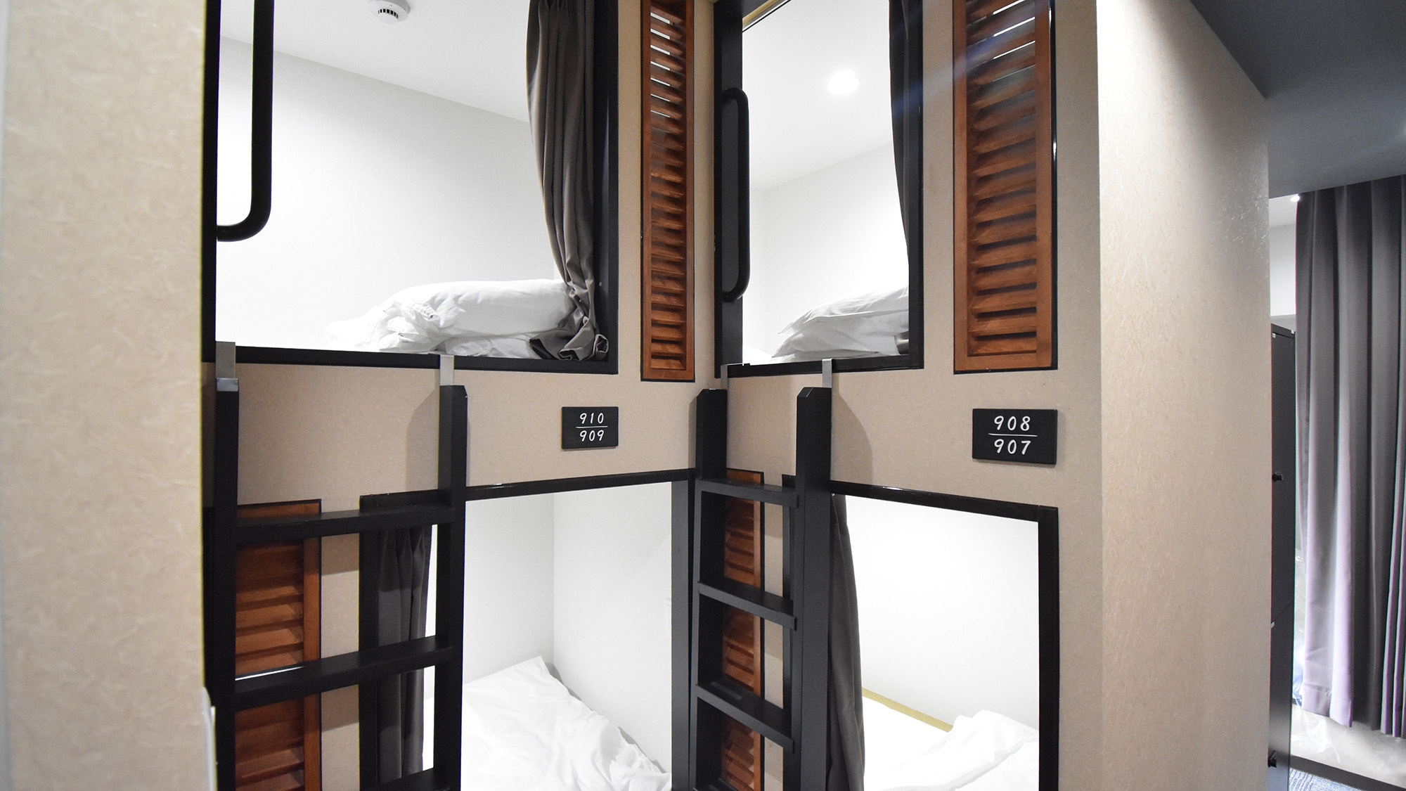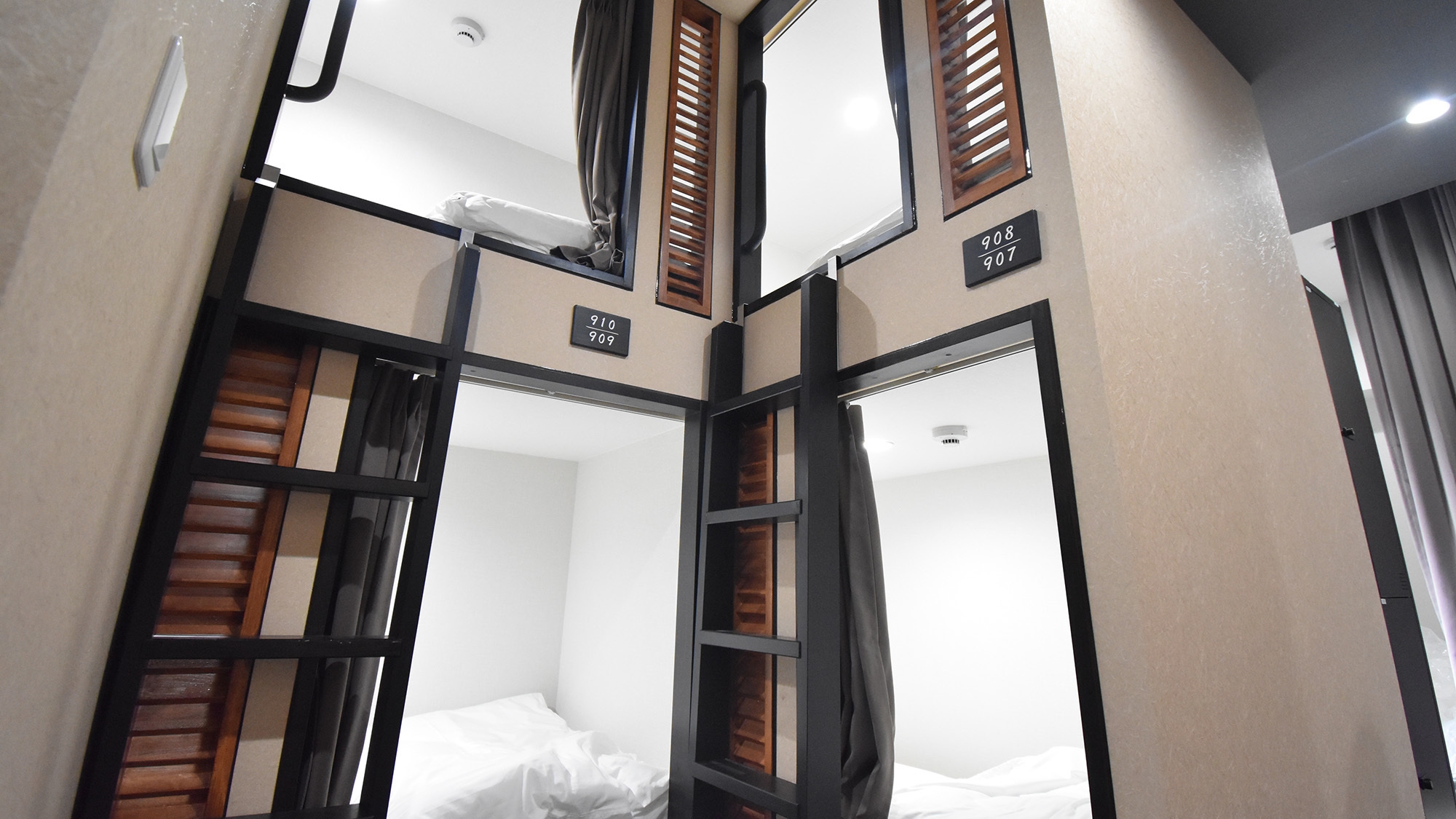 【1エリアに3区画のカプセル】※個室ではありません※枕元にはUSB-Aと通常電源のコンセント、手元照明を設置。ご家族やご友人など近くで泊まりたい方におすすめ