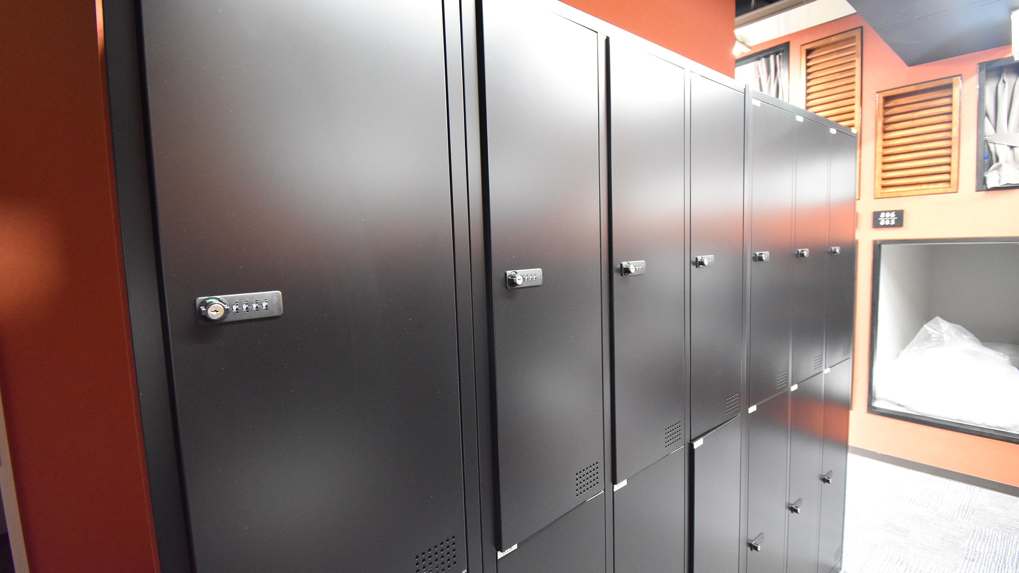 カプセルごとの個別ロッカーやキャリーケース置き場もございます