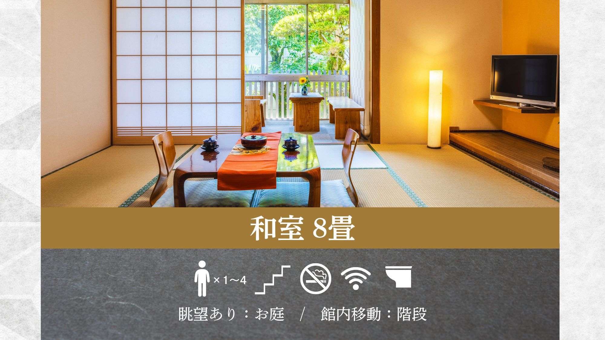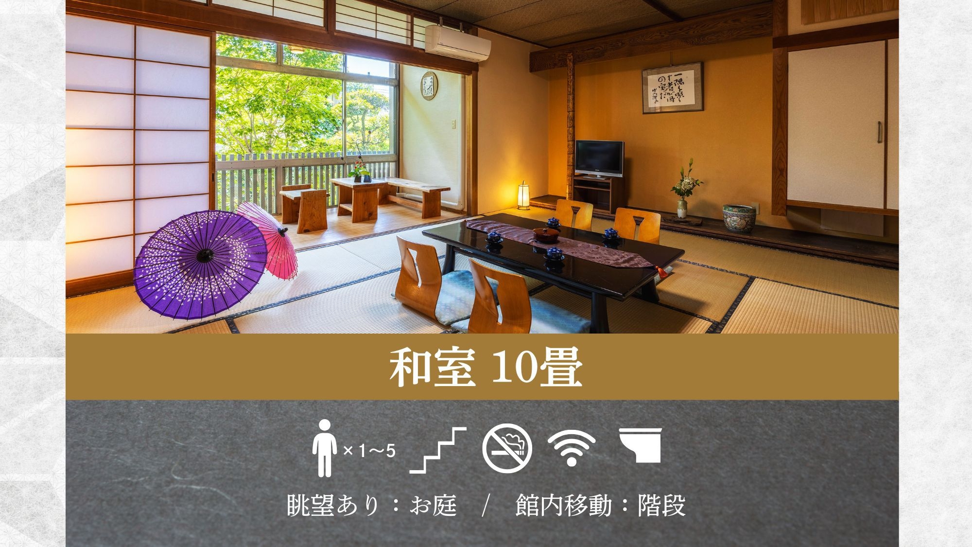 静かに流れる時間を楽しむ。洗浄機付トイレ/無料Wifi/禁煙(一階に喫煙所あり)/二階(階段利用)/歯ブラシ等個別巾着袋入り/お風呂は天然温泉大浴場へ