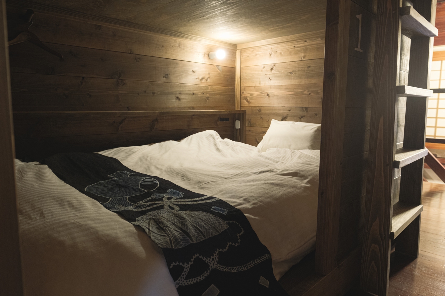 1階に共用のシャワールームとトイレがあり、2階のベッドルームはコンパクトでありながら快適なプライベート空間となっているので、単身旅行やグループでの貸切利用はもちろん、ビジネスユースにもオススメです。