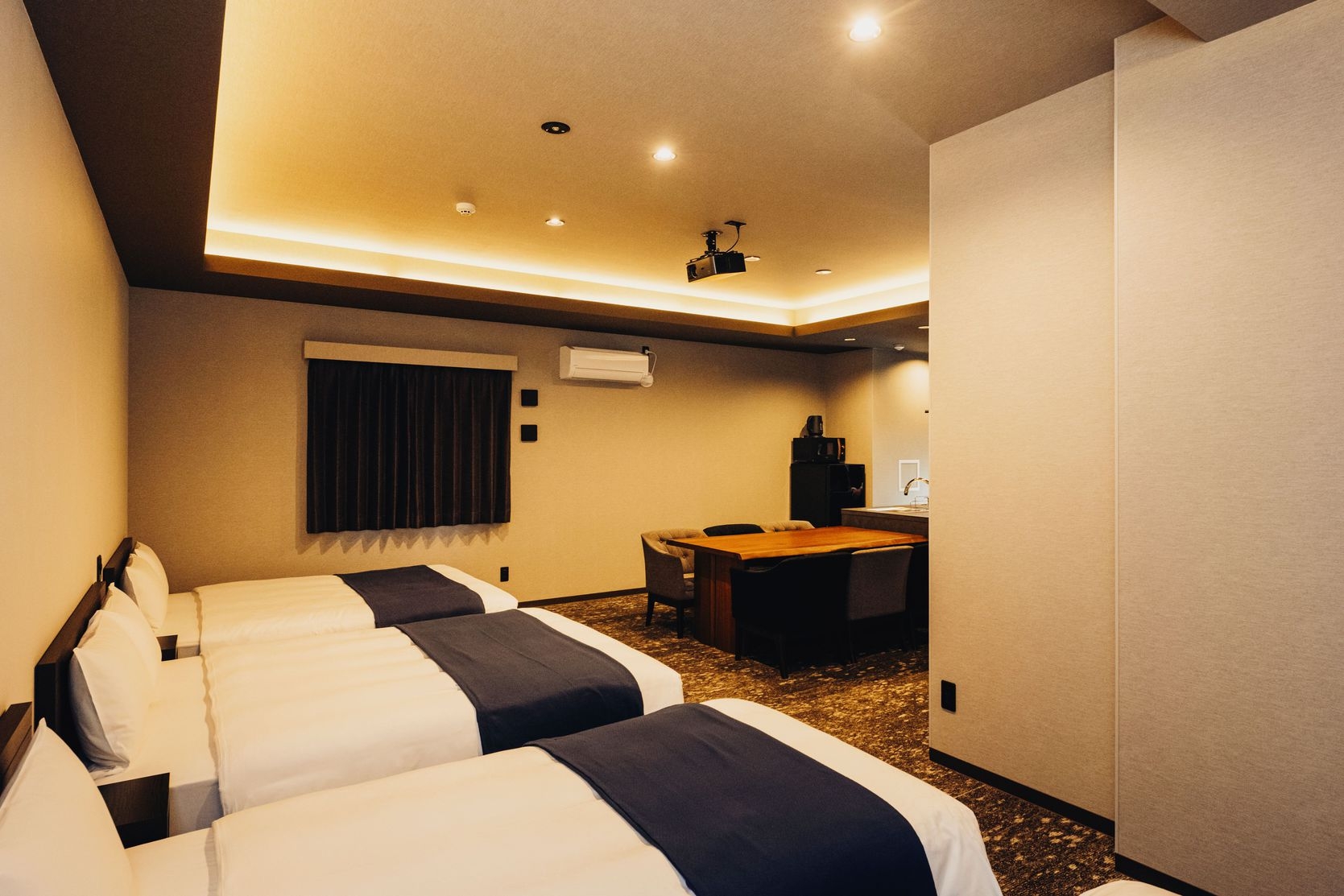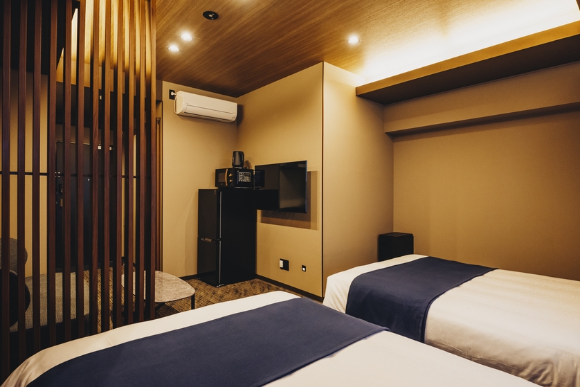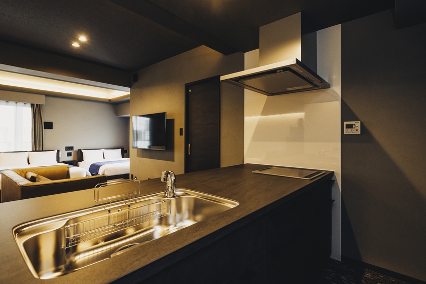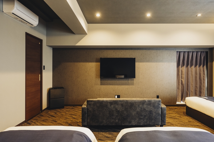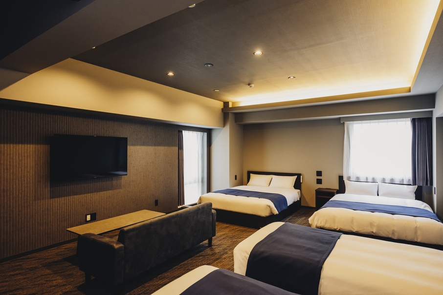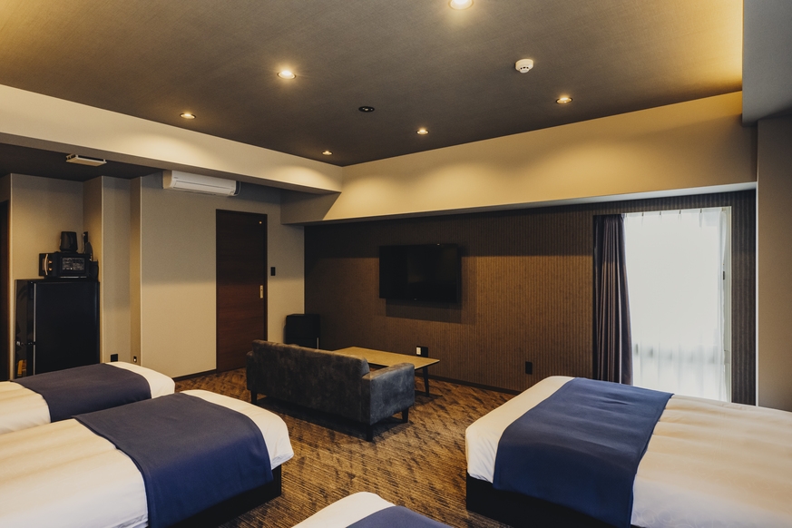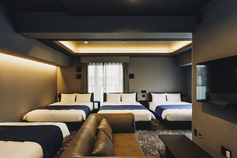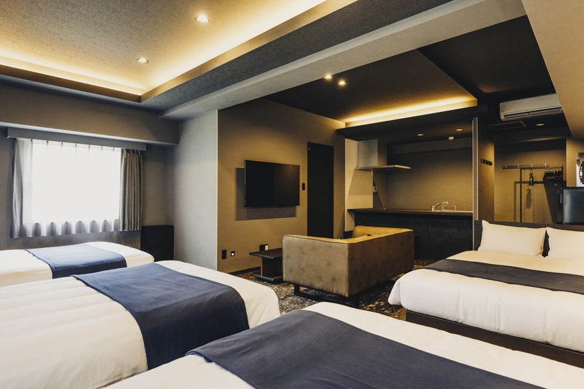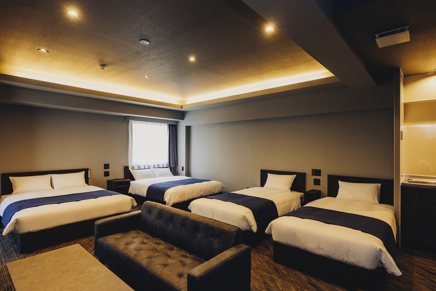 Wベッド4台//浴槽付きバス/冷蔵庫/ソファ/テーブル