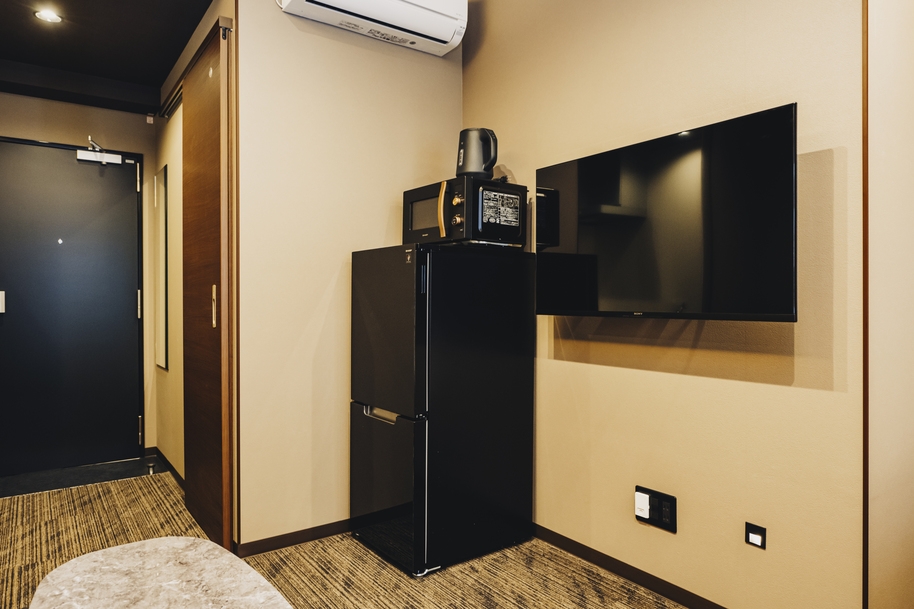 Wベッド2台 / 浴槽付きバス / 洗濯機 / テレビ / 冷蔵庫 / ケトル / 電子レンジ / ローテーブル / ソファー