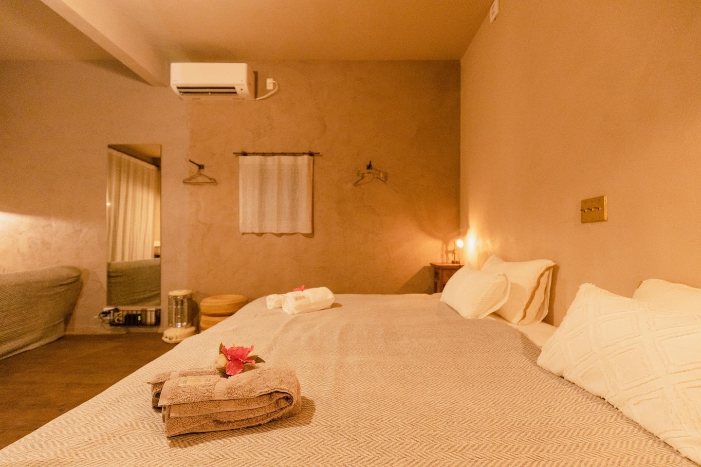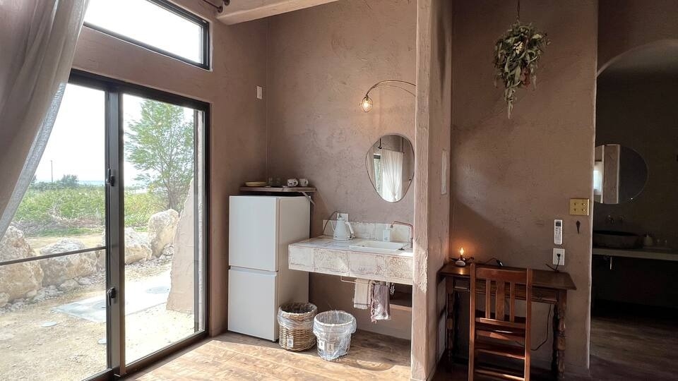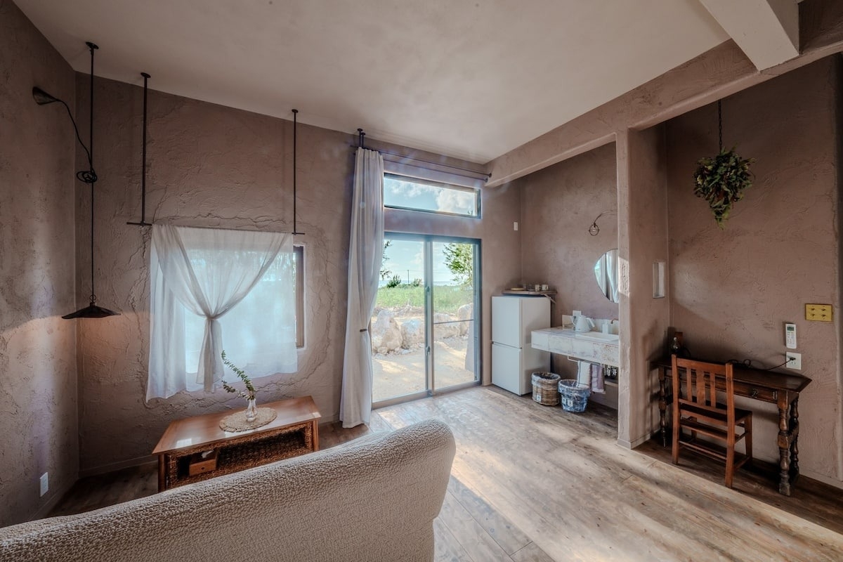 ※※※※3泊以上からのみご利用いただけます。※※※※当宿は、宮古島の中でも特に歴史深い狩俣集落に位置し、観光地では体験できない宮古島のどこか懐かしい雰囲気を色濃く感じられます。宮古島の生活風景と自然を身近に感じながら、日々の喧騒から離れたリラックスしたひとときをお楽しみいただけます。お風呂は軟水を使用しており、温泉のような入浴時間を体感できます。一歩外に出ると、海の香りがする爽やかな風が吹き抜け、夜には一面の星空が広がります。星の瞬きに包まれて、静かな時間が流れ、心と体がリフレッシュされることでしょう。宿から徒歩約2分には秘境ビーチがあります。海の透明度は高く、観光シーズンでもプライベート感があります。宮古島の生活を感じながら、海や自然と共に過ごす特別なひとときをお楽しみください。*お客様滞在中のお部屋の清掃は行えません。*宮古島という土地柄、一年を通して虫やヤモリが出るため、どうしても虫たちが室内におじゃまする場合があります。殺虫剤を用意しておりますので、ご自由にお使いくださいませ。