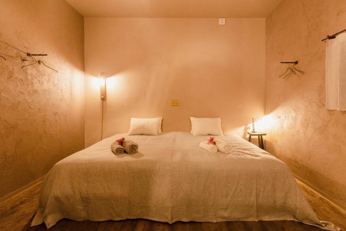 ※※※※2泊以上からのみご利用いただけます。※※※※当宿は、宮古島の中でも特に歴史深い狩俣集落に位置し、観光地では体験できない宮古島のどこか懐かしい雰囲気を色濃く感じられます。宮古島の生活風景と自然を身近に感じながら、日々の喧騒から離れたリラックスしたひとときをお楽しみいただけます。お風呂は軟水を使用しており、温泉のような入浴時間を体感できます。一歩外に出ると、海の香りがする爽やかな風が吹き抜け、夜には一面の星空が広がります。星の瞬きに包まれて、静かな時間が流れ、心と体がリフレッシュされることでしょう。宿から徒歩約2分には秘境ビーチがあります。海の透明度は高く、観光シーズンでもプライベート感があります。宮古島の生活を感じながら、海や自然と共に過ごす特別なひとときをお楽しみください。*お客様滞在中のお部屋の清掃は行えません。*宮古島という土地柄、一年を通して虫やヤモリが出るため、どうしても虫たちが室内におじゃまする場合があります。殺虫剤を用意しておりますので、ご自由にお使いくださいませ。