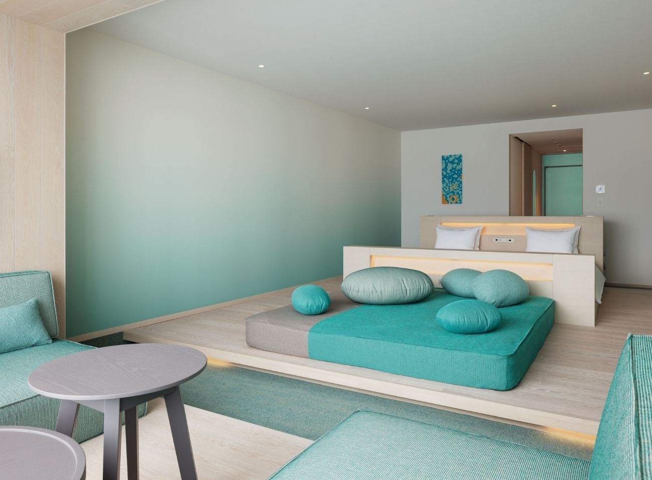 広さ53.5平米のご宿泊人数で仕様が変わる空間。2名までは広々としたゴロゴロ寝台、3名以上はベッド仕様となり少人数からグループも快適に過ごせる快適なお部屋です。