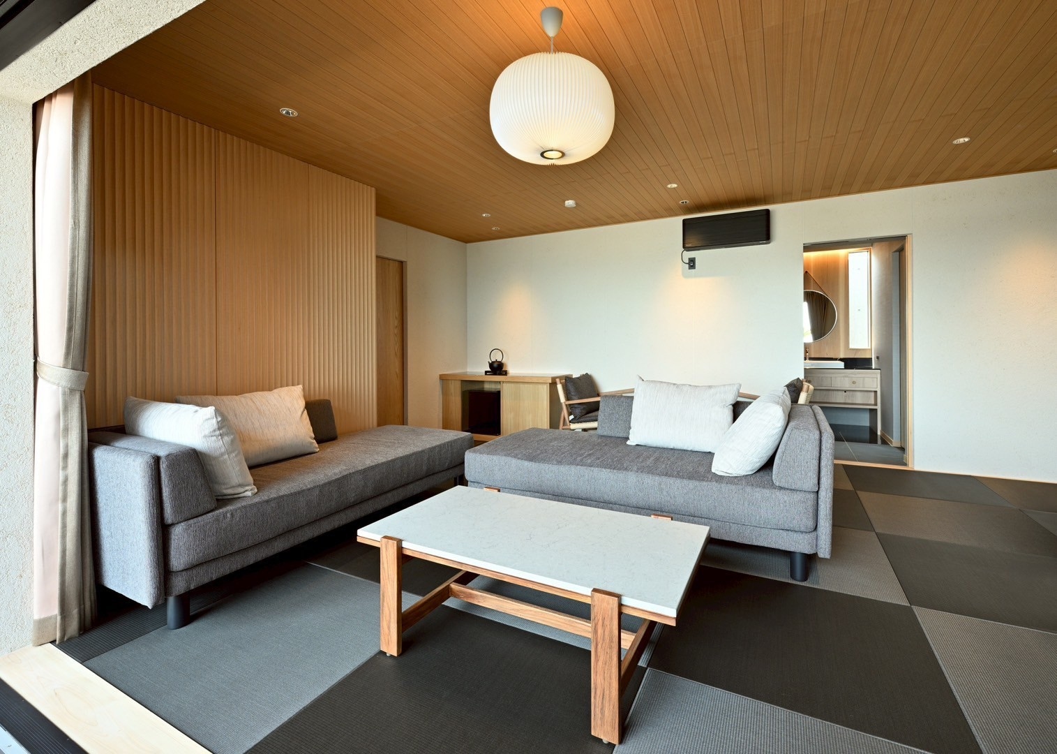 和モダンな室内で波の音を感じながら心地よいひとときを。