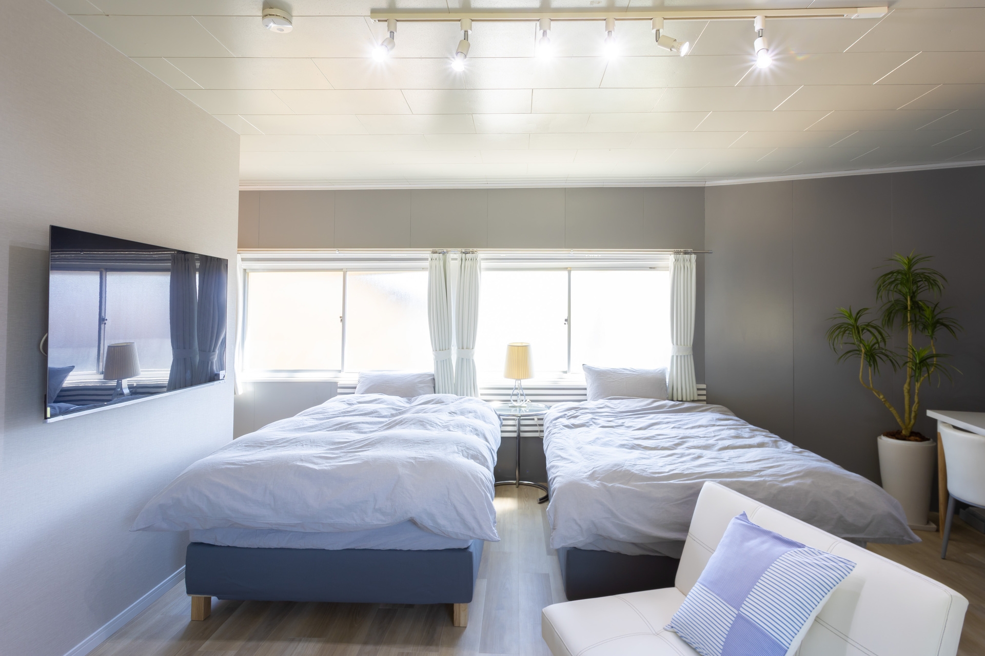 セミダブルベッドは、引っ付けることも、離すこともできます(事前リクエストがない場合は、離してセッティングいたします)
