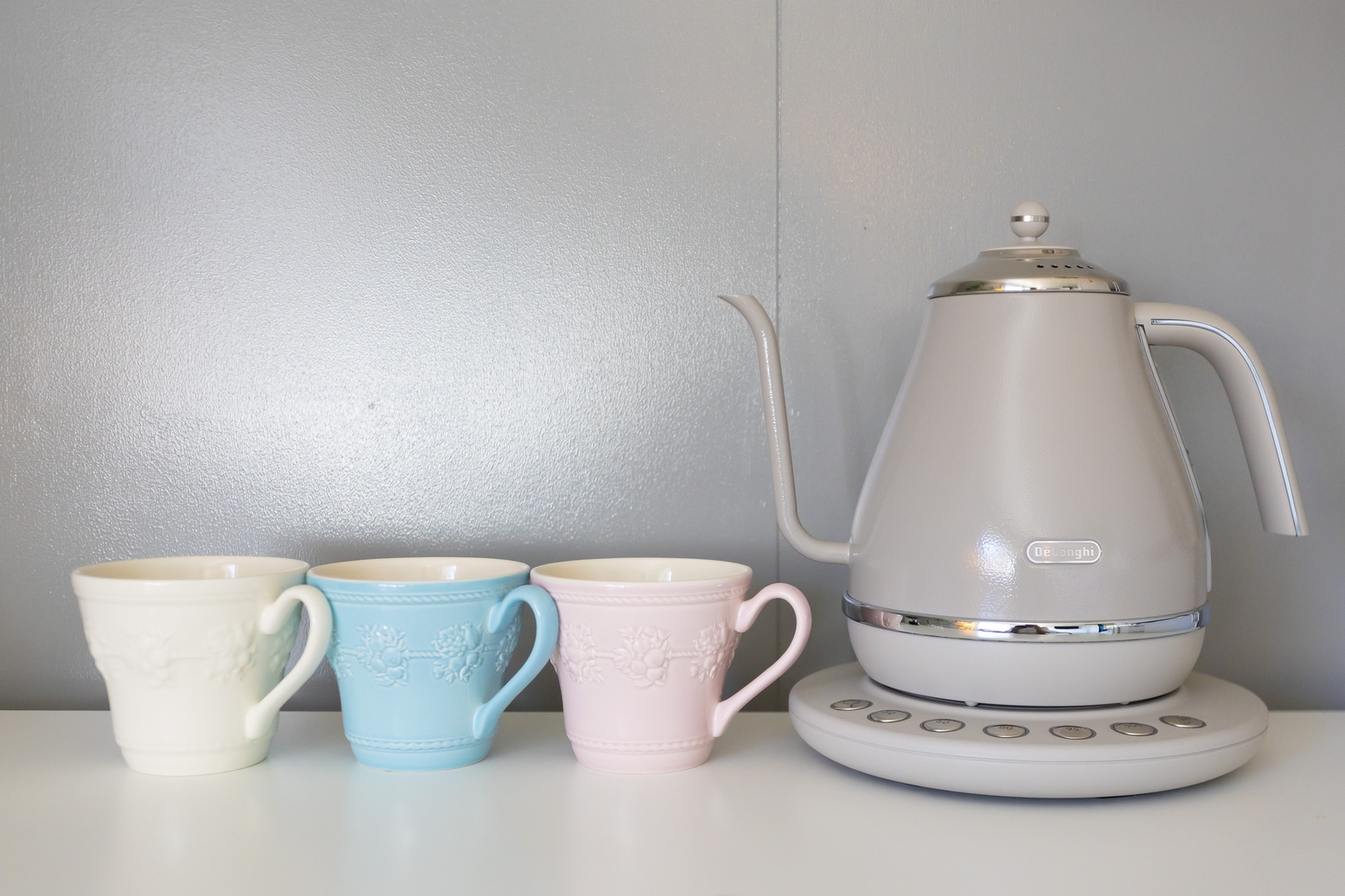 ミニ冷凍冷蔵庫、オーブンレンジ、マグカップ(Wedgewood社)、お皿、ナイフフォークをご用意