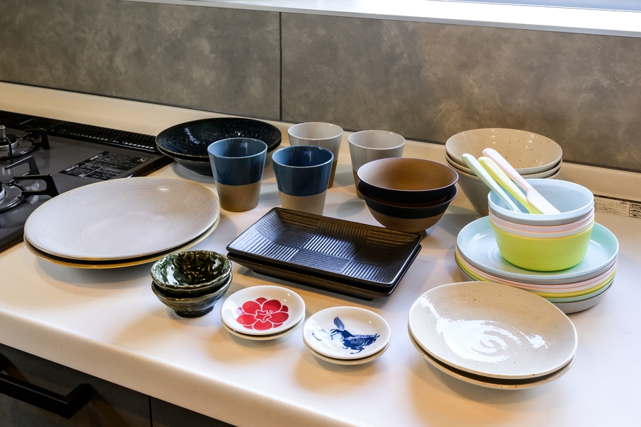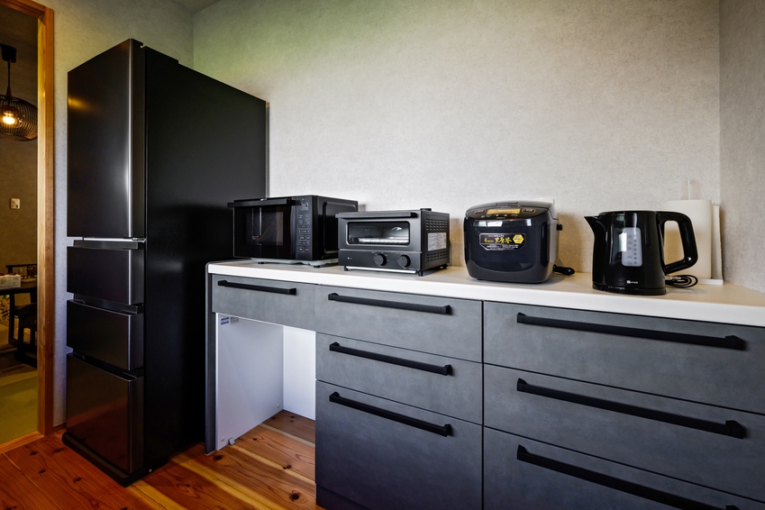 ・電気ケトル・電子レンジ・調理器具・食器類・炊飯器、トースター