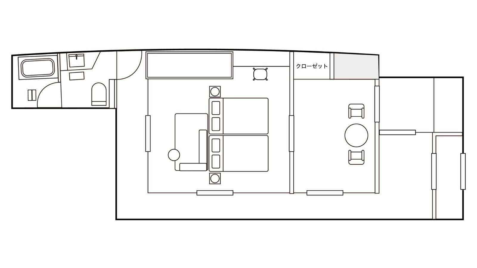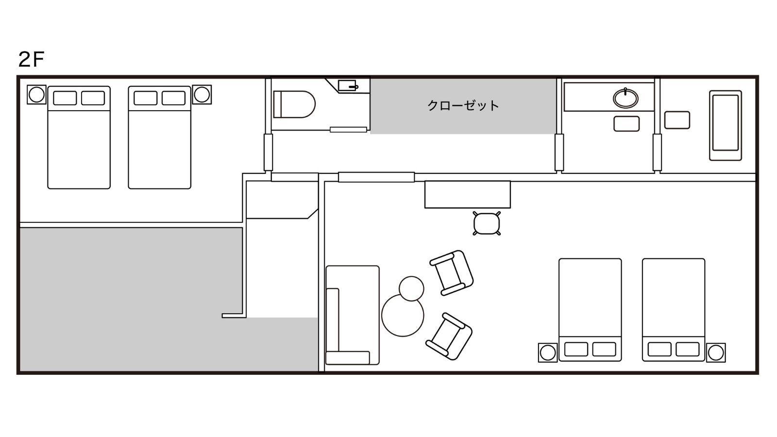 フロント棟2階のお部屋で、コンパクトながら2ベットルームで4台のベッドを備えており、グループ旅行にもおすすめです。
