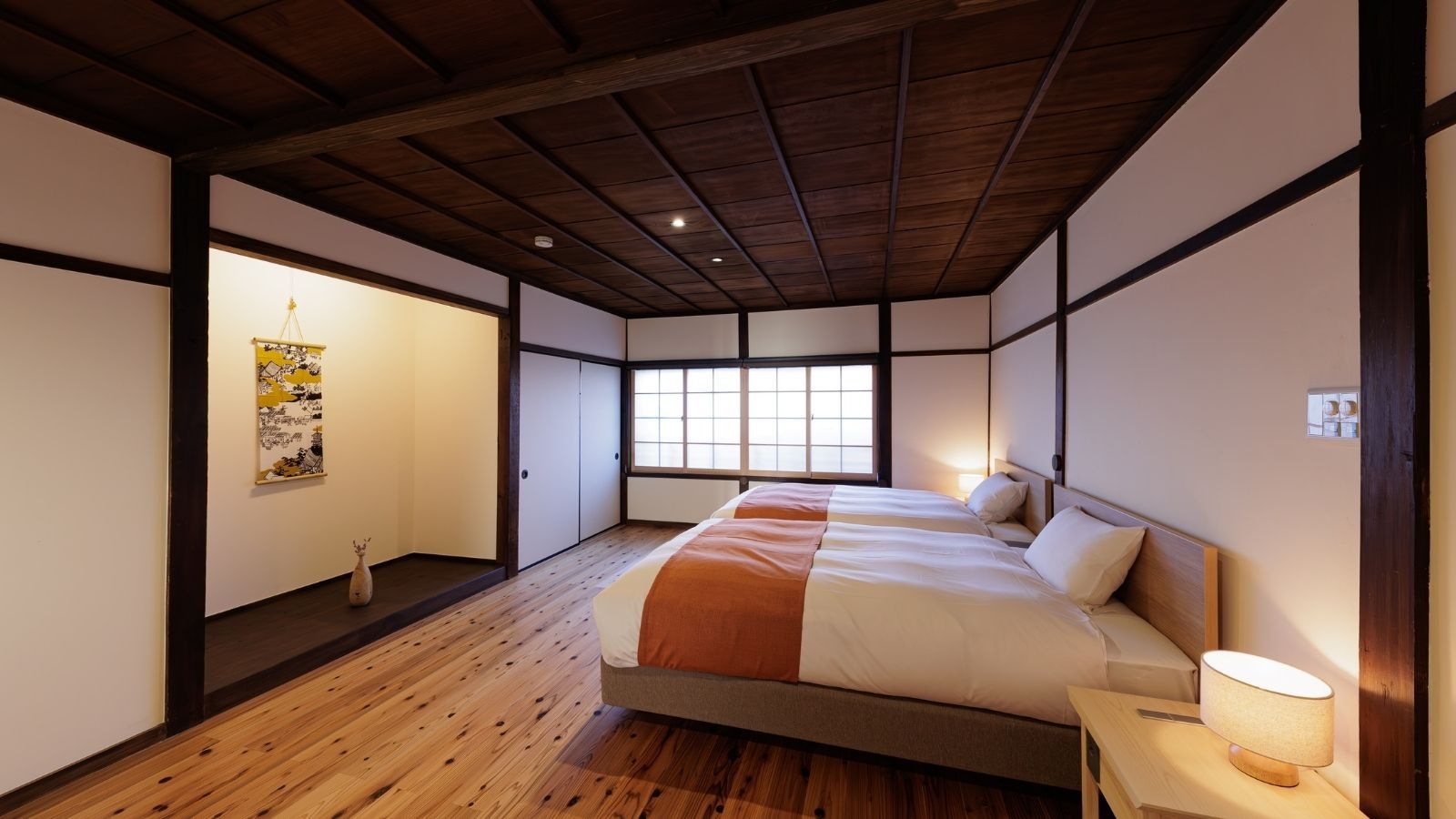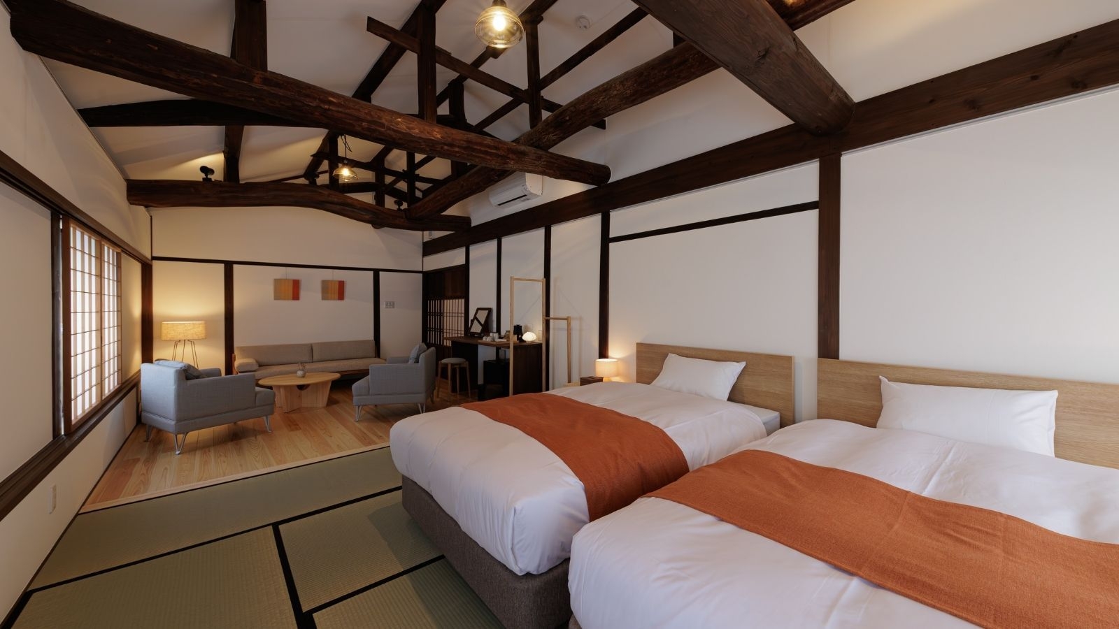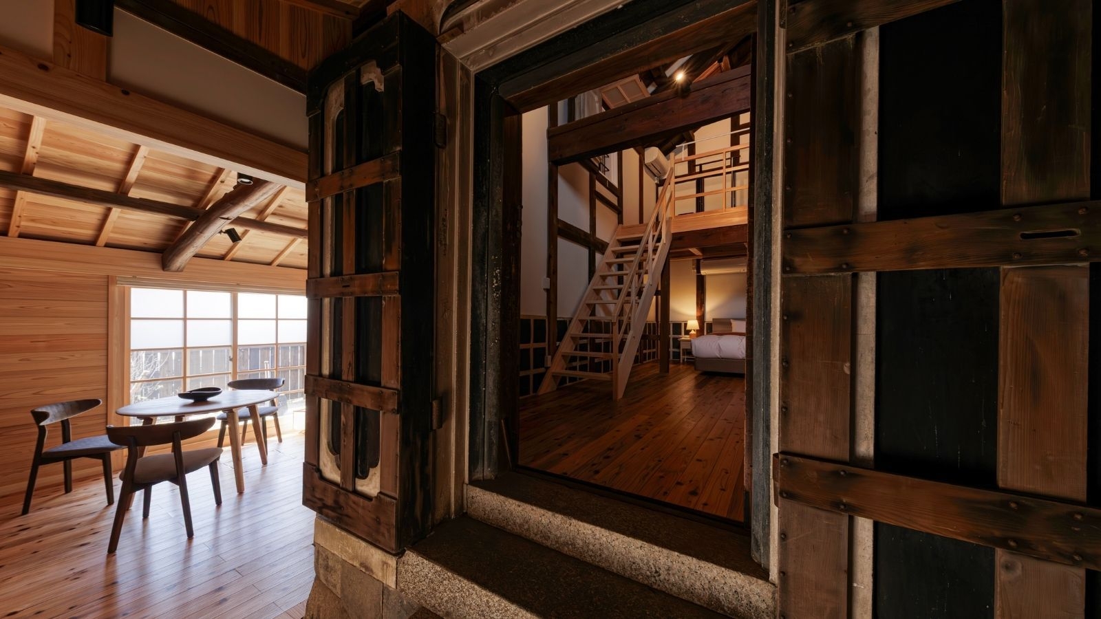 古き良き伊勢河崎のまちに点在する歴史的建造物を改修し、全室造りの異なる6棟8室の宿。