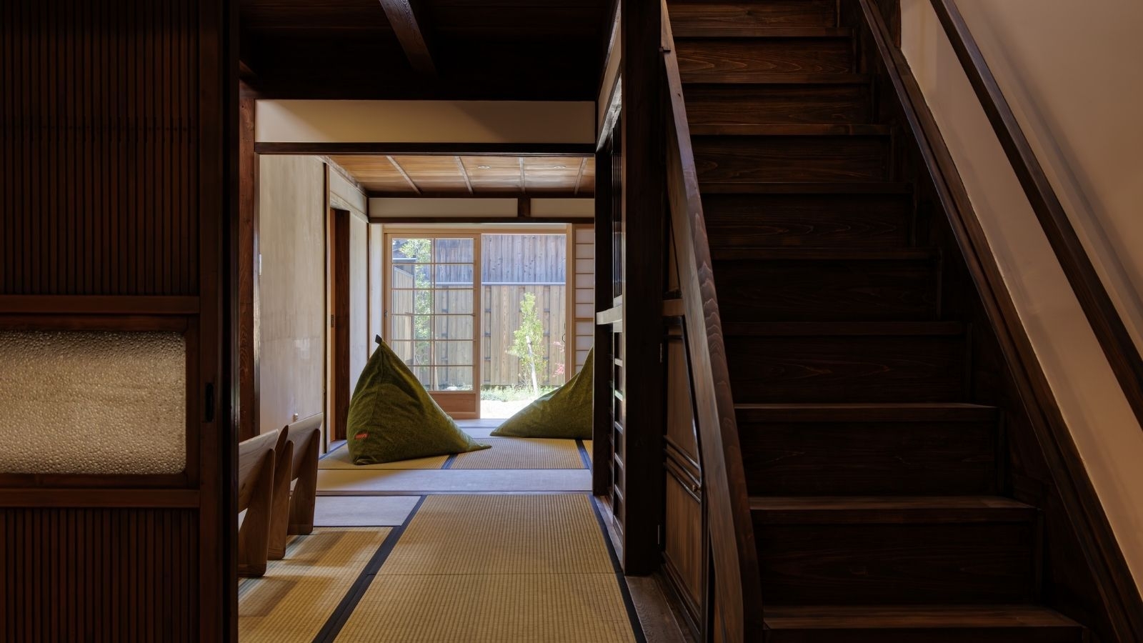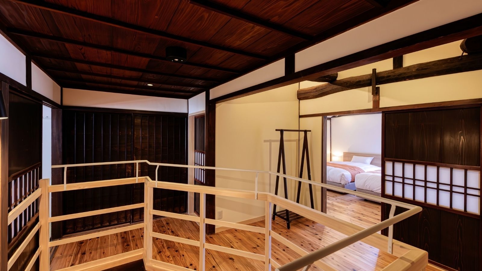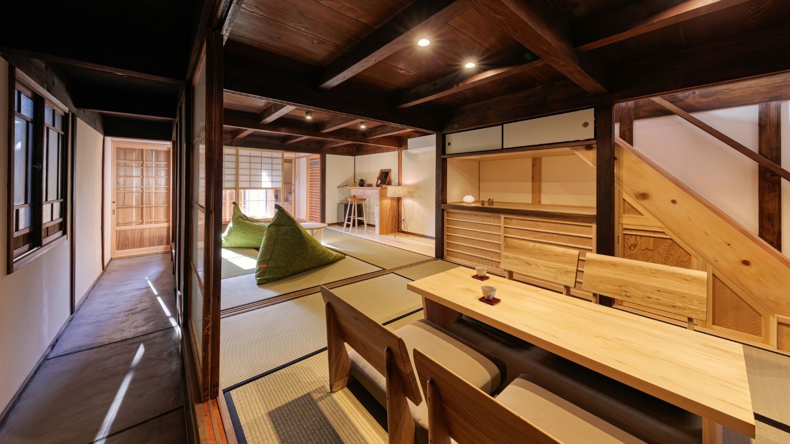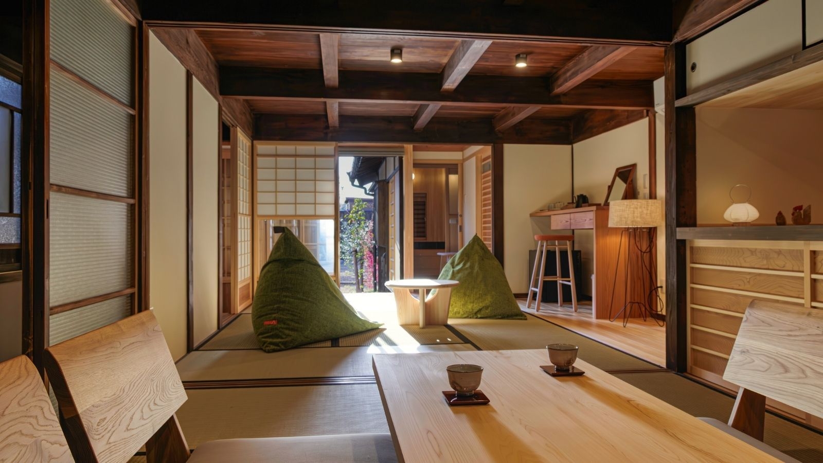 明治44年に建てられ、かつては履物屋として親しまれていた建物を改修。1階の奥には昔懐かしい縁側、2階は広々とベッドルームを2室ご用意しています。
