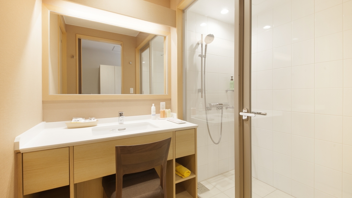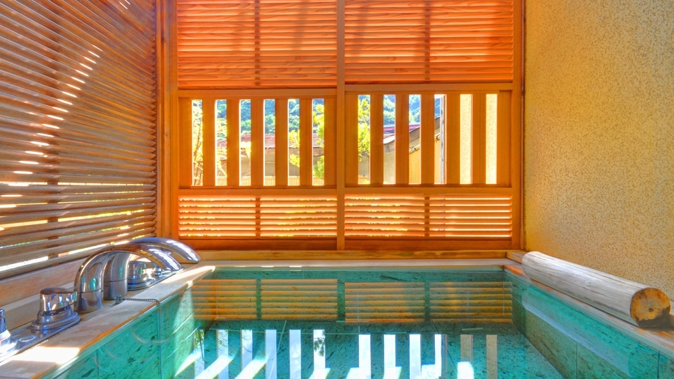 温泉内湯付客室(禁煙)です。シンプルな洋室に温泉内湯(洗い場は付いておりません)と独立したシャワーブースが付いています。※エレベーターから離れた客室です。禁煙室