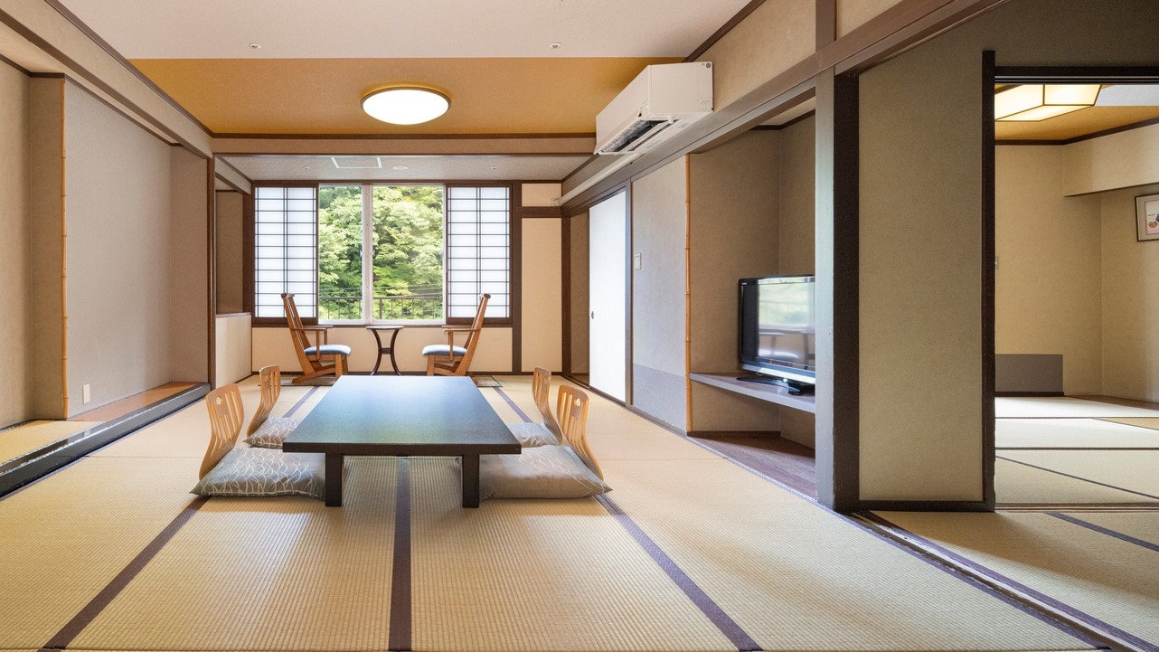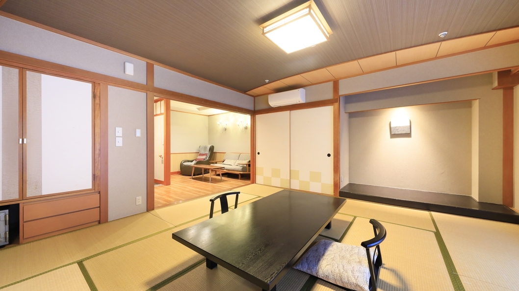 広々12畳の本間に、4.5畳和室、ツインルームがついた、3世代家族やグループでのご利用も可能な露天風呂付客室です