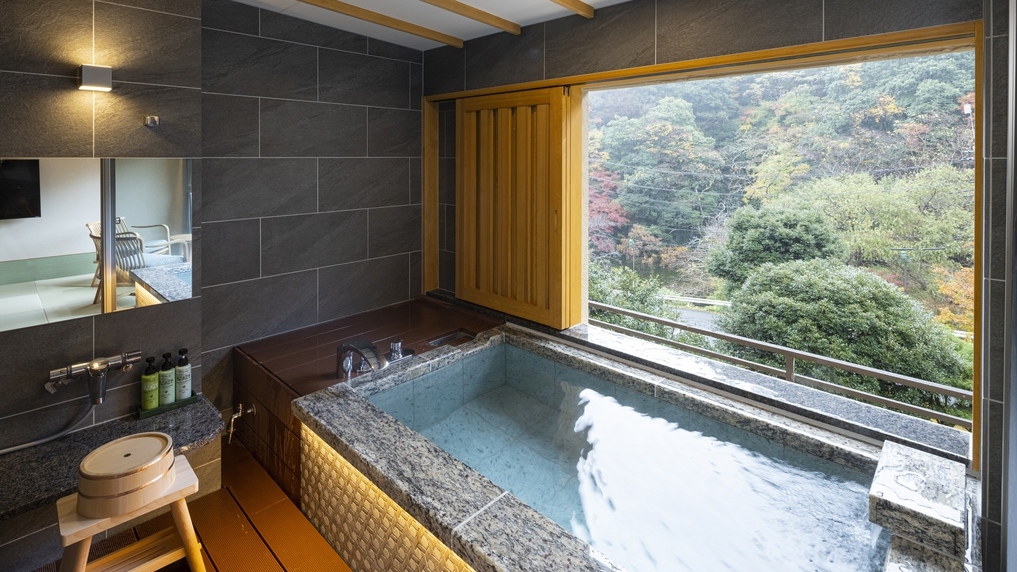 お部屋は展望温泉内風呂付きタイプですので、箱根の温泉をご滞在中いつでも天候や時間を気にせずゆっくりと愉しめます。