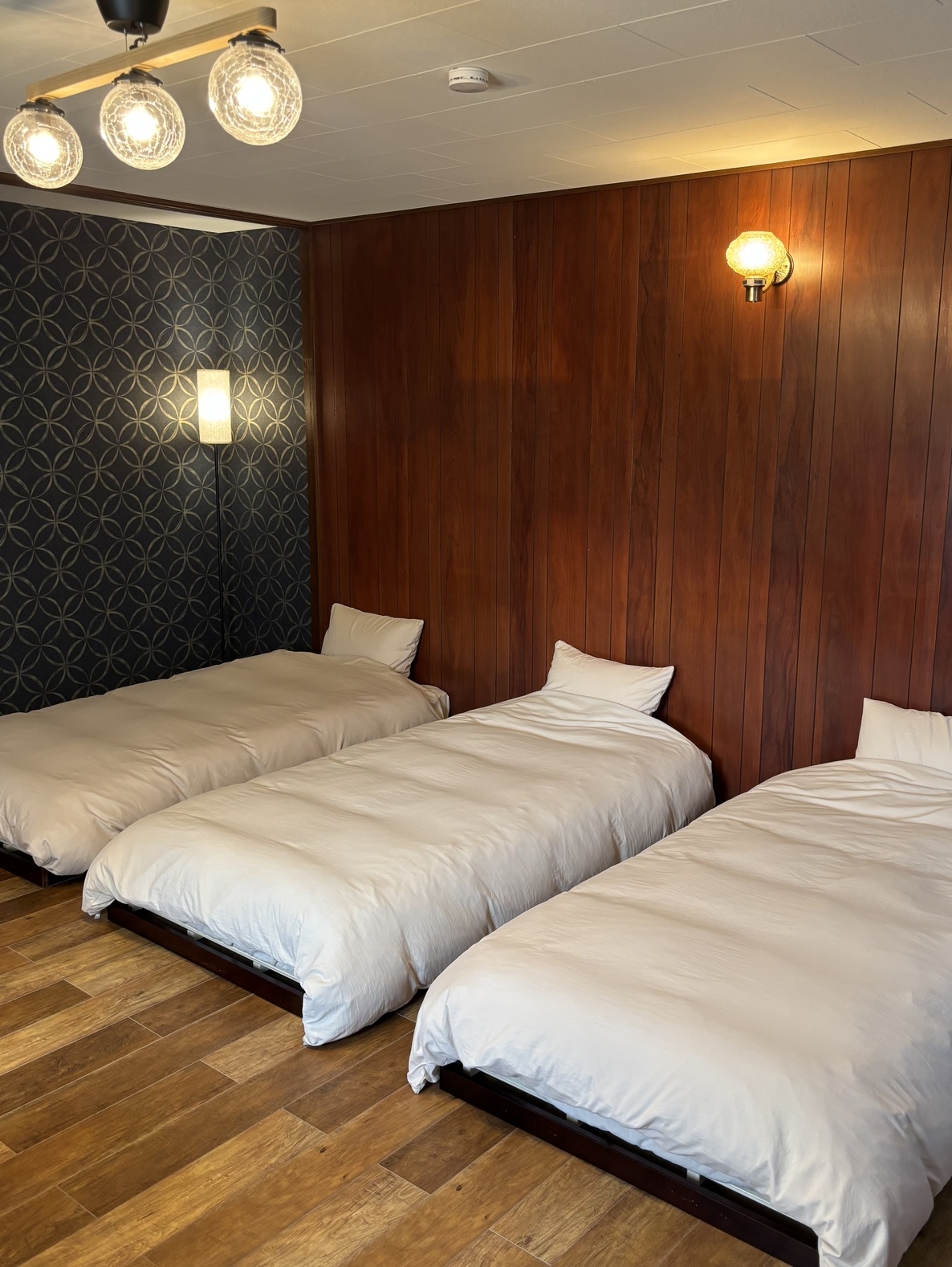 小田原城と御幸の浜の中間、小田原巡りに便利な場所に佇む2階建ての宿泊施設です。1階にはブルーのタイルが映える昔ながらの台所、2階にはバルコニーに面した和室、モダンを感じるダイニング、少しレトロな寝室が2つあり、最大9名様がゆったりとお過ごしいただけます。60年間の時を紡いできた空間をぜひお楽しみ下さい。1階のおむすび屋さんでは朝食、離れのネパールカレー屋さんでは夕食をお楽しみいただけます。近隣には素敵なカフェやパン屋さんなどもたくさんあり、歩いてすぐのバス停からは箱根湯本まで15分ほどです。箱根観光や日帰り温泉も手軽に楽しめます。*エレベーターなし*建物目の前は国道の為、道路側のお部屋は車のエンジン音や走行音が聞こえます*1960年施工の歴史ある建物な為、隙間風や虫さんが出てくる場合があります[宿泊施設]2階建ての建物で、お部屋は1階と2階にあります3LDK1階キッチンスペース1階シャワーブース(バスタブなし)2階3ベッドルームリビングエリア●寝具リビングエリア:シングル布団3組ベッドルーム1:ダブルベッド1台ベッドルーム2:シングルベッド4台※6名様以上のご予約の場合、人数によってリビングエリアにお布団を追加でご用意いたします●駐車場・駐輪場はありません●主な家電・無料Wi-Fi・エアコン<リビング>プロジェクター・HDMIケーブルNetflixやAmazon primeの動画配信サービスのご利用が出来ますが、ゲスト様ご自身のアカウントでログインが必要です※地上デジタル放送の視聴不可●主なキッチン用品調理器具・食器類電子レンジ・電気ケトル・冷蔵庫・炊飯器包丁・まな板食器用洗剤・スポンジ●主なアメニティーバスタオル・フェイスタオル歯ブラシスリッパ【ご入室についてのお願い】当施設のご利用は、ご予約者様およびそのご同行者様のみとさせていただいております。ご予約のない方のご入室は、禁止いたします。【禁止事項】法令に違反する行為、および公序良俗に反する行為は固く禁止いたします。すべての方が気持ちよくご利用いただけるよう、ご理解とご協力をお願いいたします。