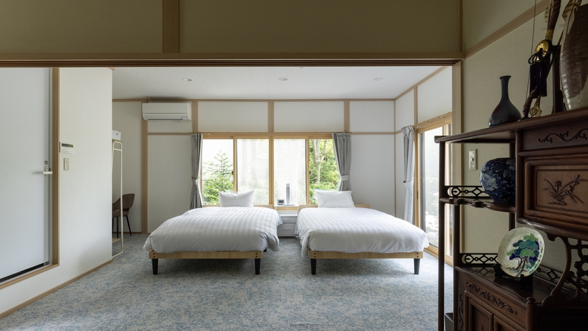 【禁煙】ベッド×2台・ソファベッド×1台| 冷蔵庫・電気ケトル・ミネラルウォーター・電気スタンド・鏡・フェイスタオル・バスタオルがございます。