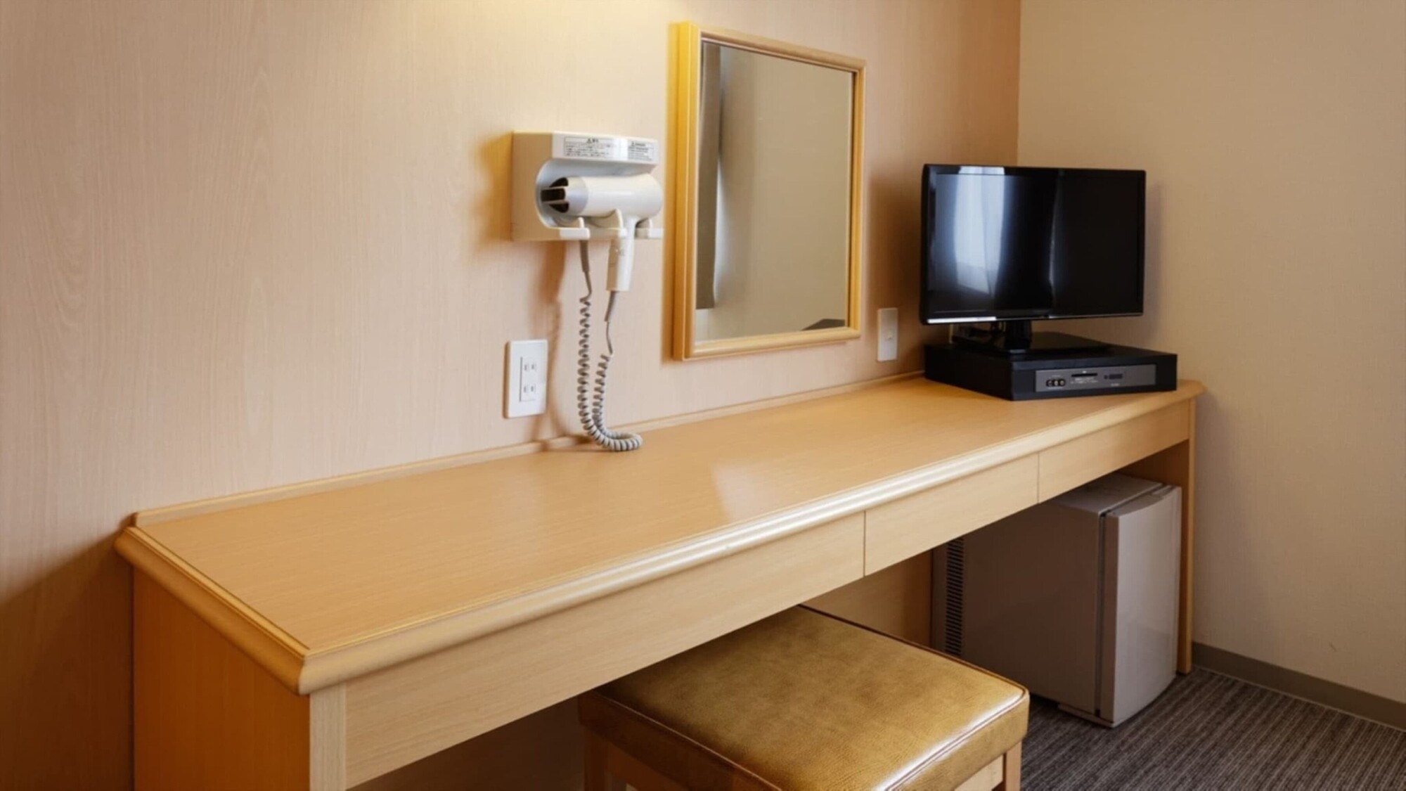 セミダブルベッド(幅123cm)と基本的な設備、アメニティを完備。シンプルと快適さを追求した客室です。