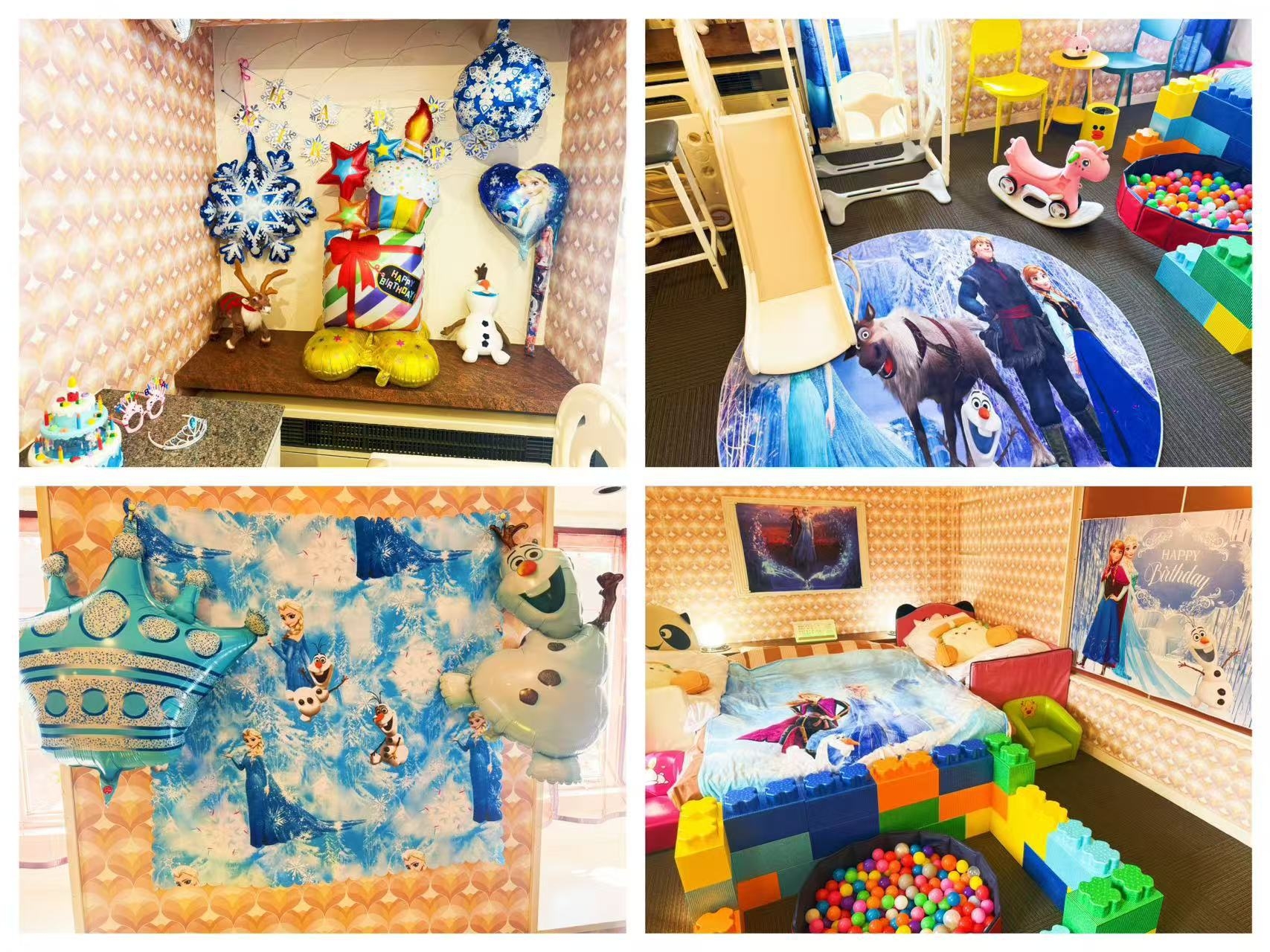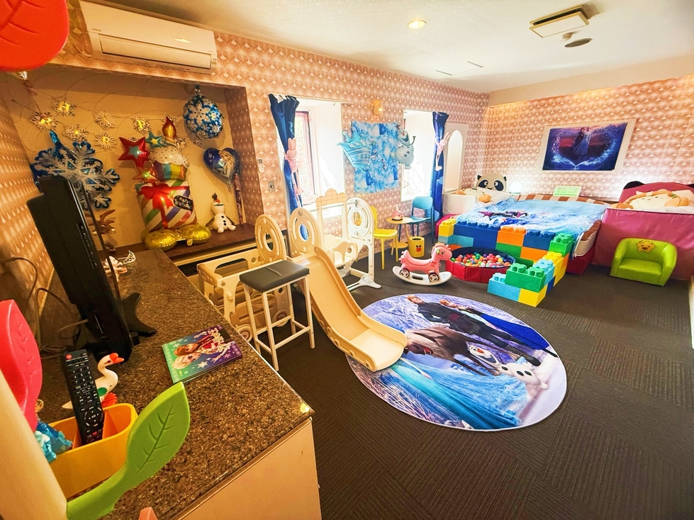 − アナ雪グッズ満載の夢のプリンセス空間 − 滑り台・ブランコ付きで楽しく遊べる − 子供用ベッド・補助便座・バスタブ完備で安心快適