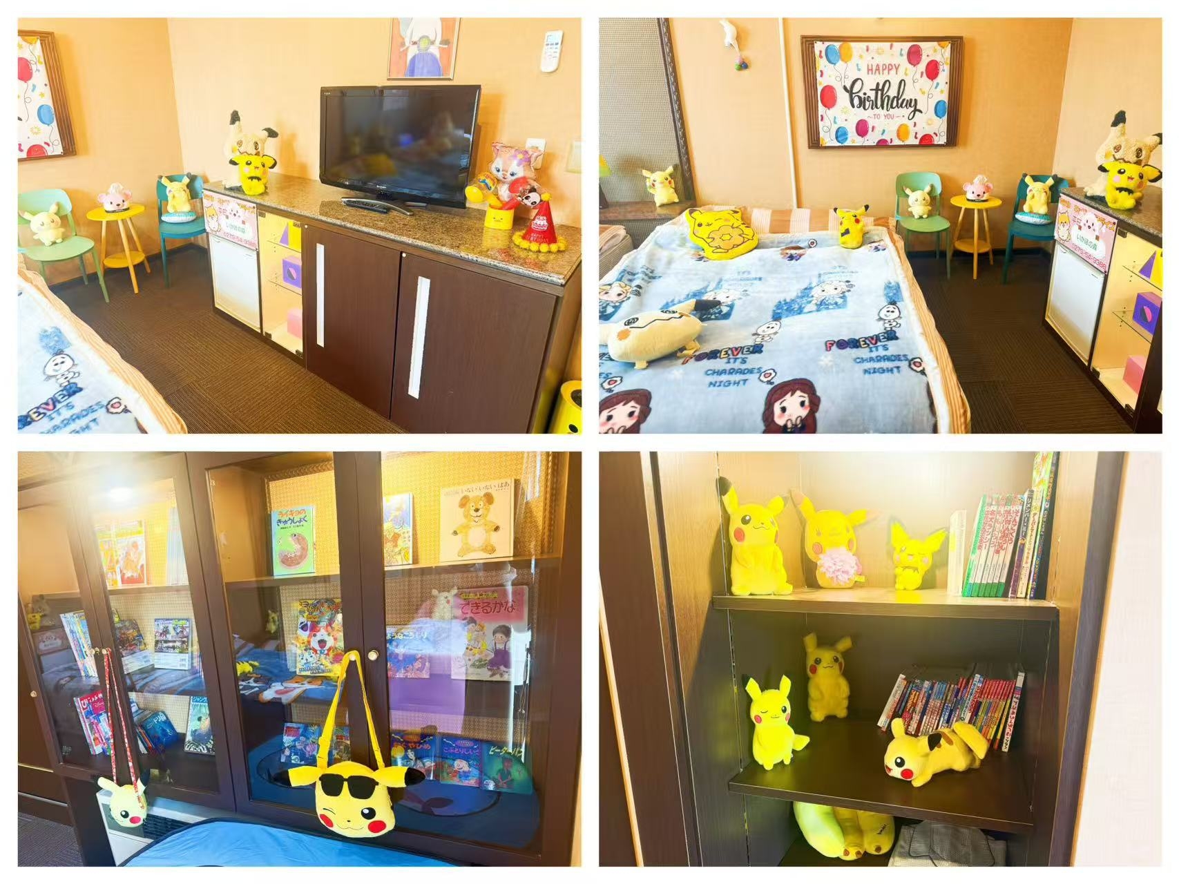 ワクワクのファミリー客室で特別なひとときを!かわいい装飾に囲まれ、絵本や遊びの空間が充実。広々ベッドで家族みんなが快適に過ごせます。幼児向け設備も完備し、楽しく