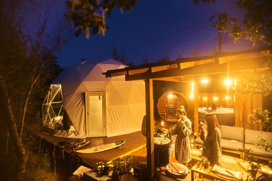1日1組限定で完全貸切。誰にも干渉されない竹林に囲まれた隠れ家で、あなただけの特別なアウトドアステイ体験を。最大8名様までご宿泊可能〇※楽天トラベルのシステム上5名様までのご予約となりますので、5名様以上の場合はご予約確定後に正しいご宿泊人数様についてご連絡くださいませ。【ベッドルーム】メインベッド(ワイドキング220cm)ロフトベッド(ワイドキング220cm)※さらに寝具2組追加可能最大8名までご宿泊可能です。【バスルーム】トイレ・シャワー【サウナ】開放的なプライベートガーデンには大人気のバレルサウナを完備。ロウリュウ◎【ジャグジー】水風呂にもなる大型ジャグジー(7名用)ジェットマッサージが堪能できる。【アウトドアリビング】大きなウッドデッキスペースを備え、贅沢にアウトドアステイをお楽しみいただけます。【設備・アメニティ】電子レンジ/冷蔵庫充電器/スピーカー/プロジェクター/加湿器/クーラーボックス シャンプー/ボディソープ/コンディショナー/バスタオル/フェイスタオル/バスローブ/ドライヤー/洗顔/化粧水/クレンジング/乳液/歯ブラシ/くし/スリッパ/サウナウェア※ご宿泊人数とお子様料金に関して※・3歳以下のお子様は無料でご宿泊いただけます。(予約時の人数には含めず、宿泊に関する質問項目で3歳以下のお子様の人数をご選択ください)・4歳以上のお子様は大人料金を頂戴いたします。