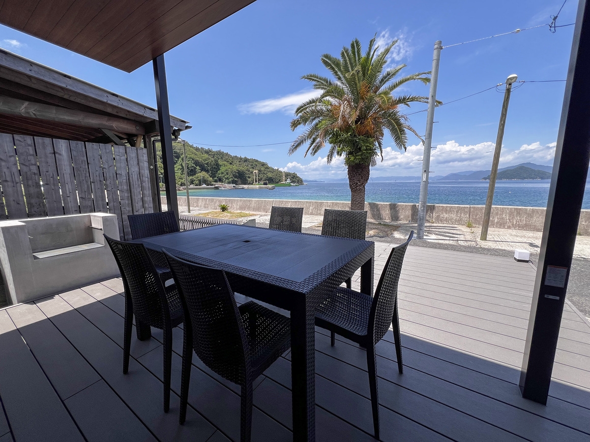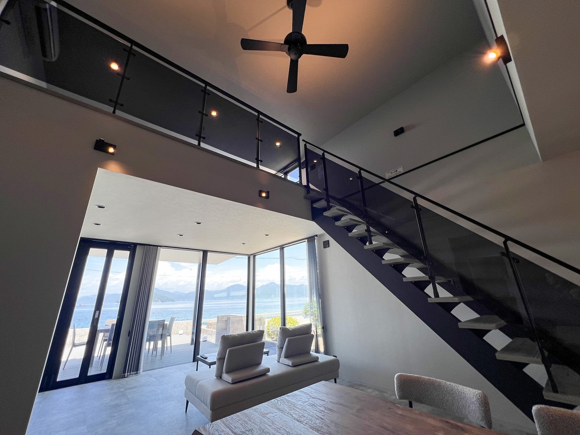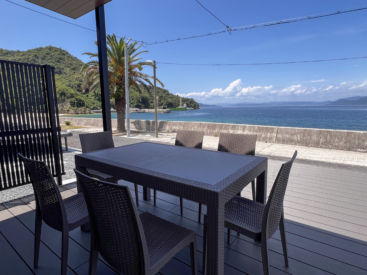 その江田島・沖見ブルービーチのオーシャンフロントに佇む『LIFEMENT GLANZ OKIMI』は、プライベート感あふれる一棟貸しの別荘です。
