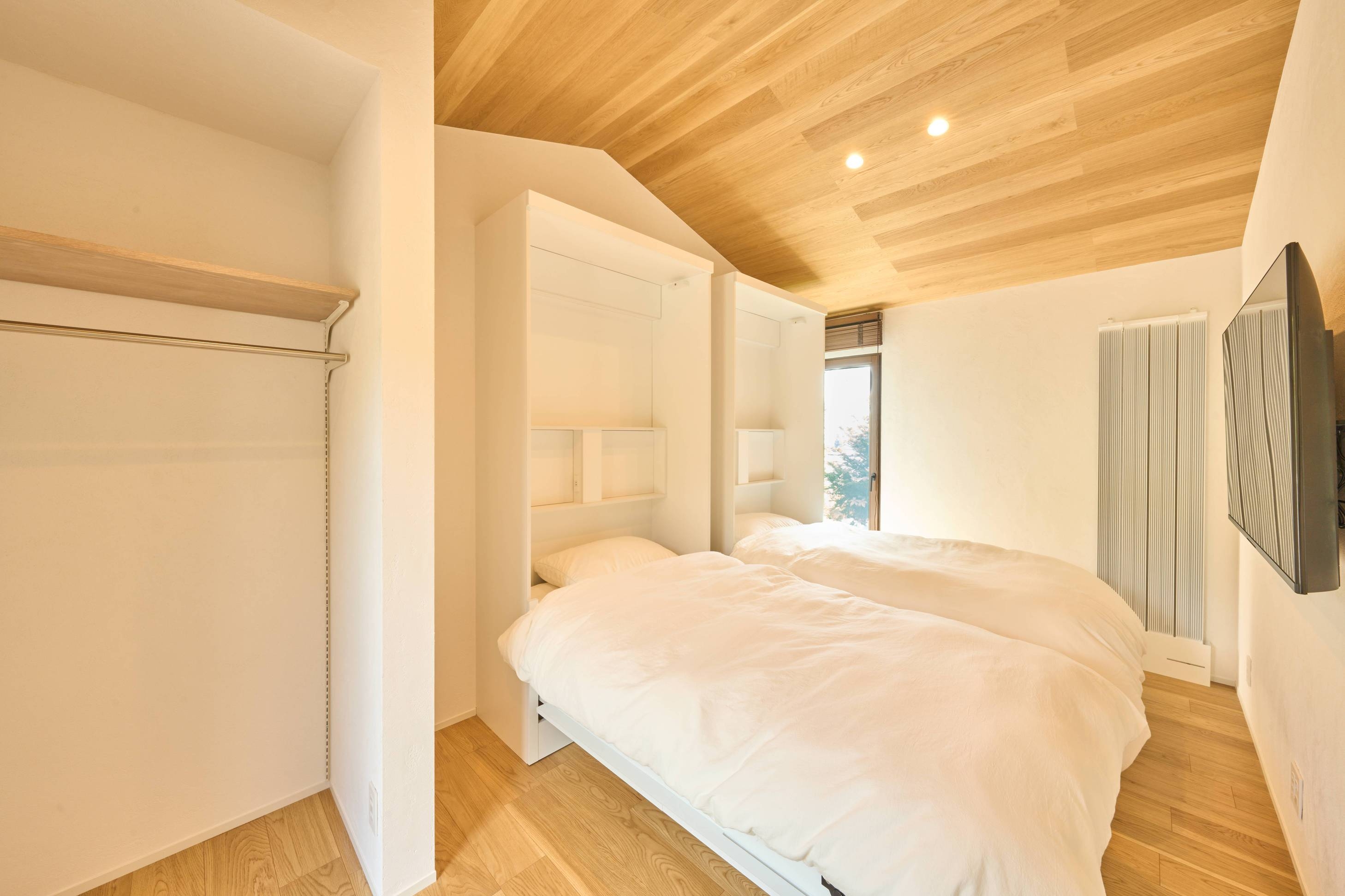 寝室2部屋、シングルベッド4台(D棟のみ3台)、キッチン完備、ダイニングスペース、トイレ、バス、Wi-Fi完備、TV(D棟のみプロジェクター)