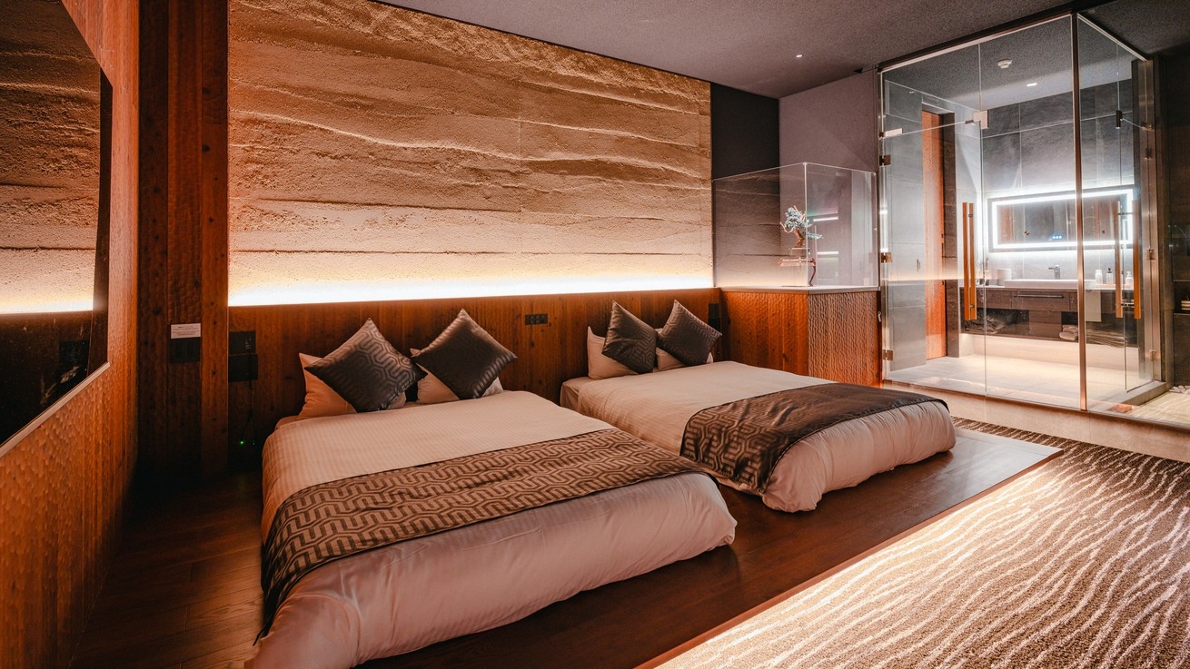 独立した2台のベッドを設けており、 ご友人やご家族でのご利用に最適。 快適なご滞在をお約束します。※エキストラベッドは、客室備付けのソファベッドをご利用ください